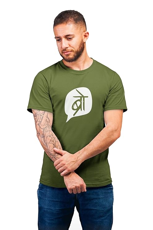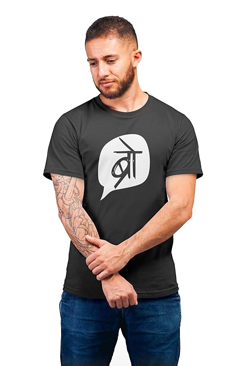 Trendy Bro Printed Cotton Navy Blue Round Neck T-shirt For Men The Elegant Fashion