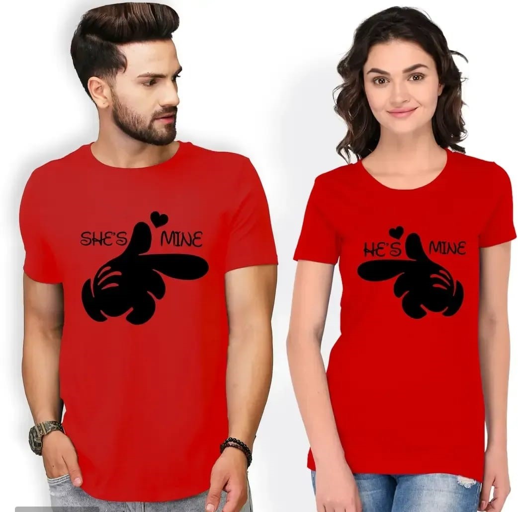 White Cotton Blend Round Neck Printed Couple T-Shirts for Men & Women