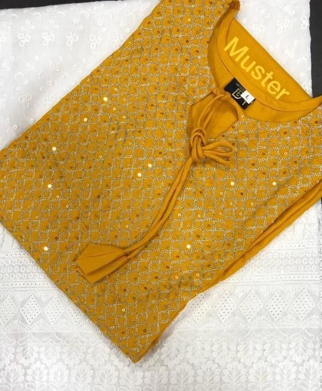 Elegant Rayon Long Gown Kurti Hand Embroidery with Dori Belt With Tassel Navy Blue