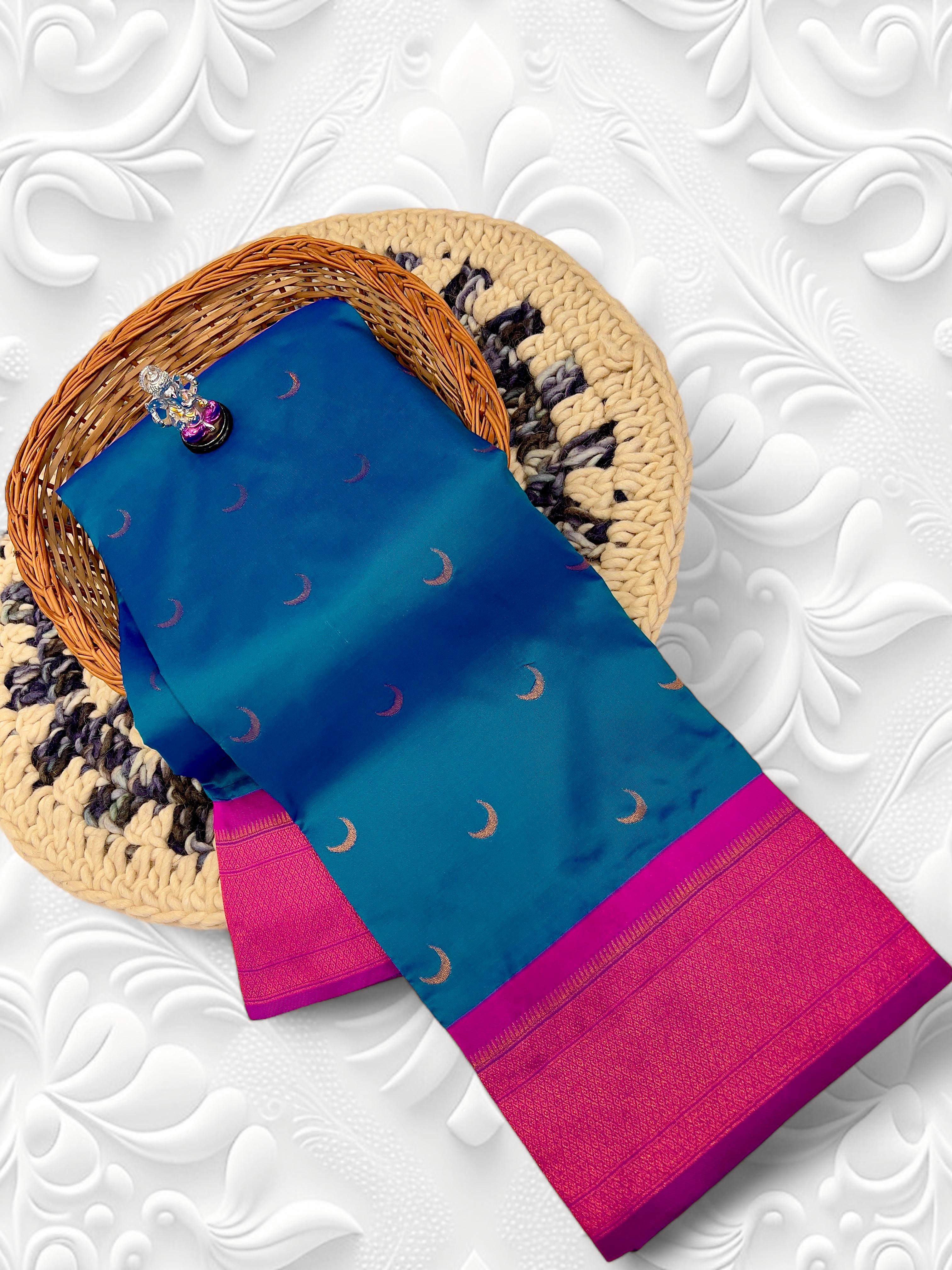 Blend Silk Chandrakor 9 Var Paithani Saree all Over Zari Butti with Contrast Blouse Piece