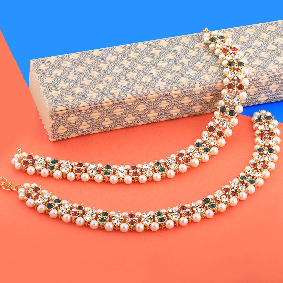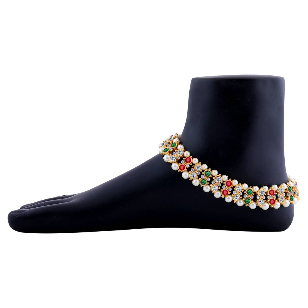 Gold Plated Attractive Designer Multi-Colour Kundan Anklet For Women
