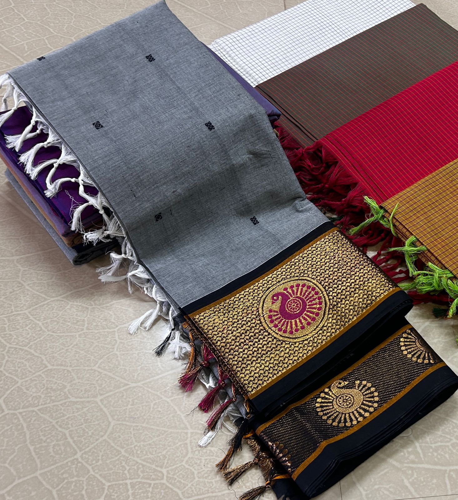 Kanchi Palin Cottin Saree with Butta with Fancy Design Saree with Running Blouse