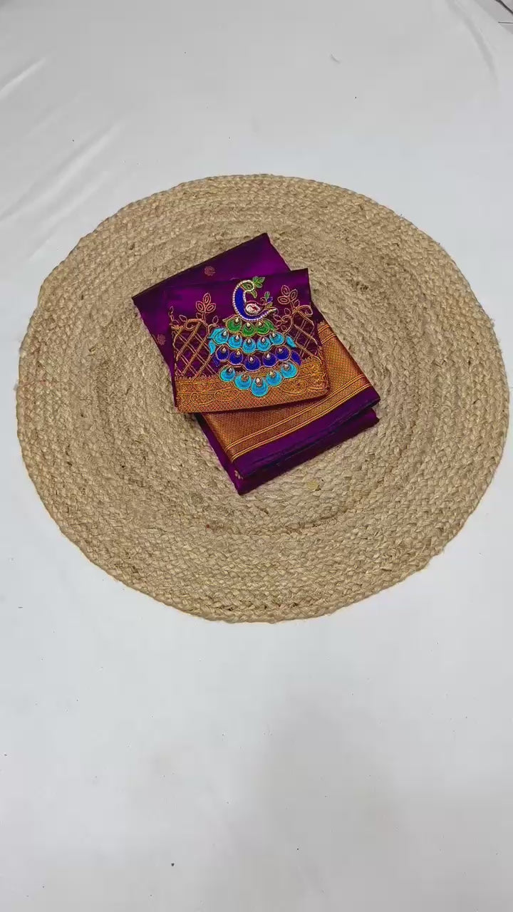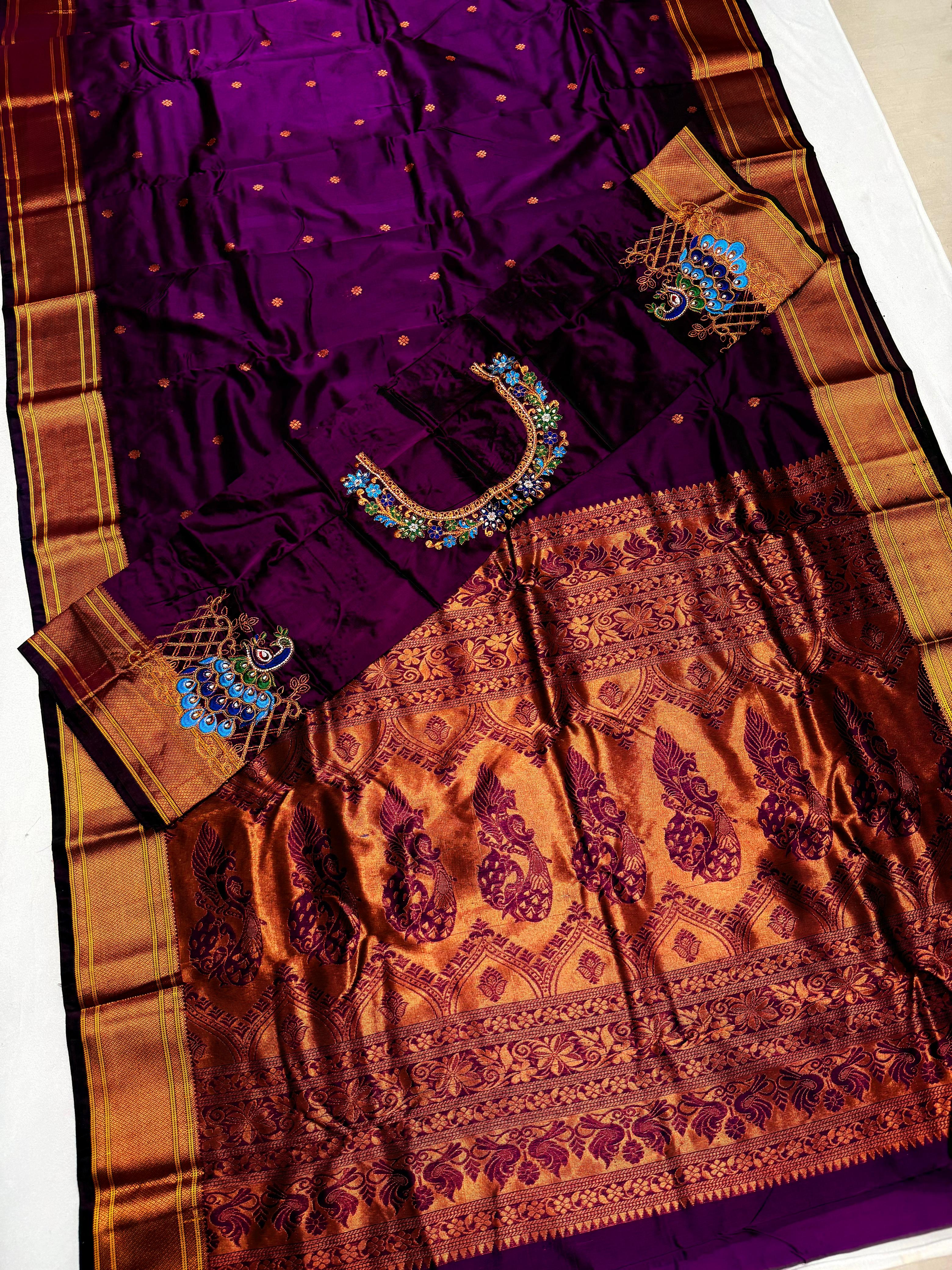 - Pallu: Traditional 4x1 Peacock Paithani Pallu