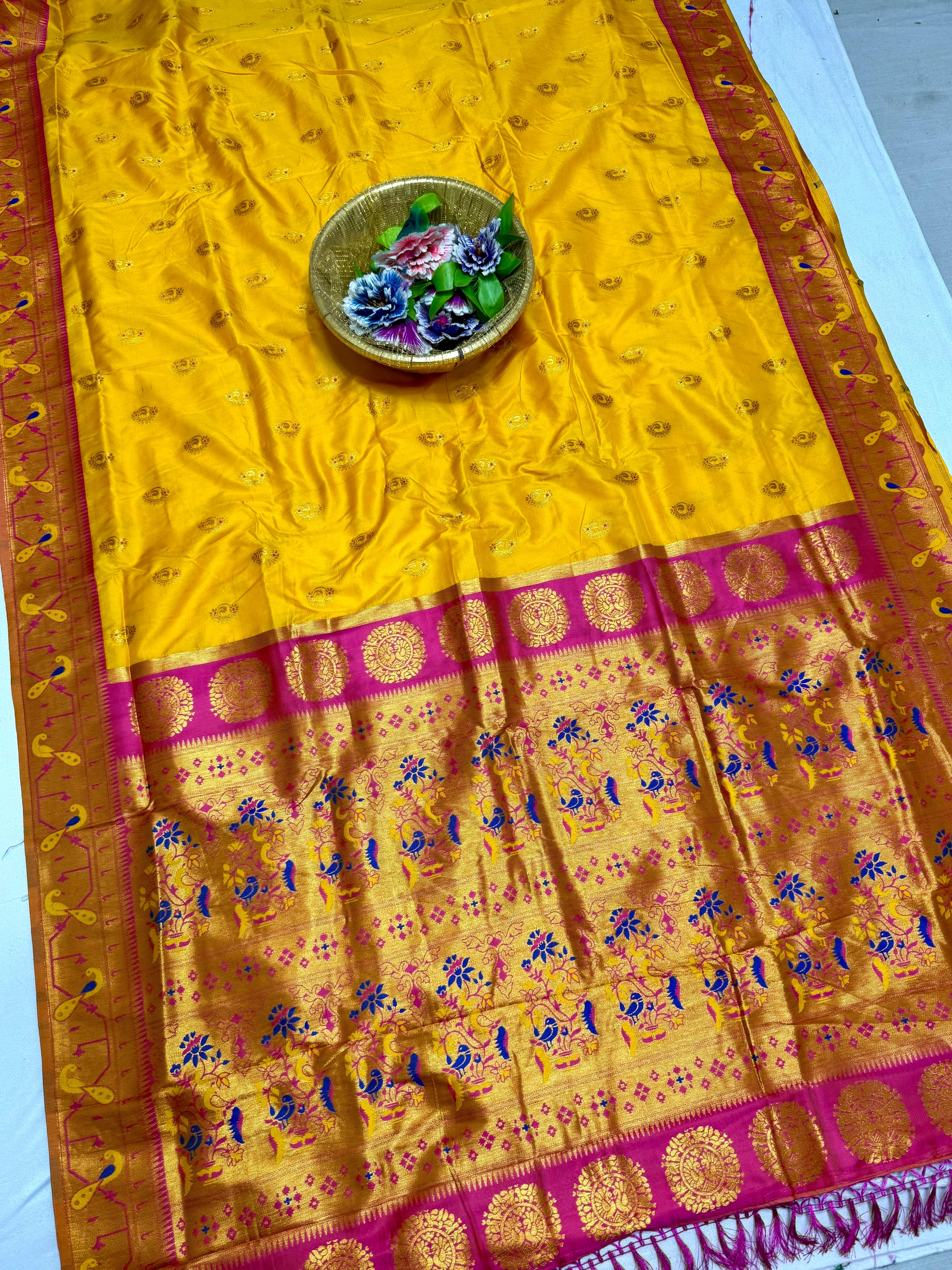 - Type of Saree: Premium Brocade Paithani Saree with Traditional Popat-Nathani Buttis