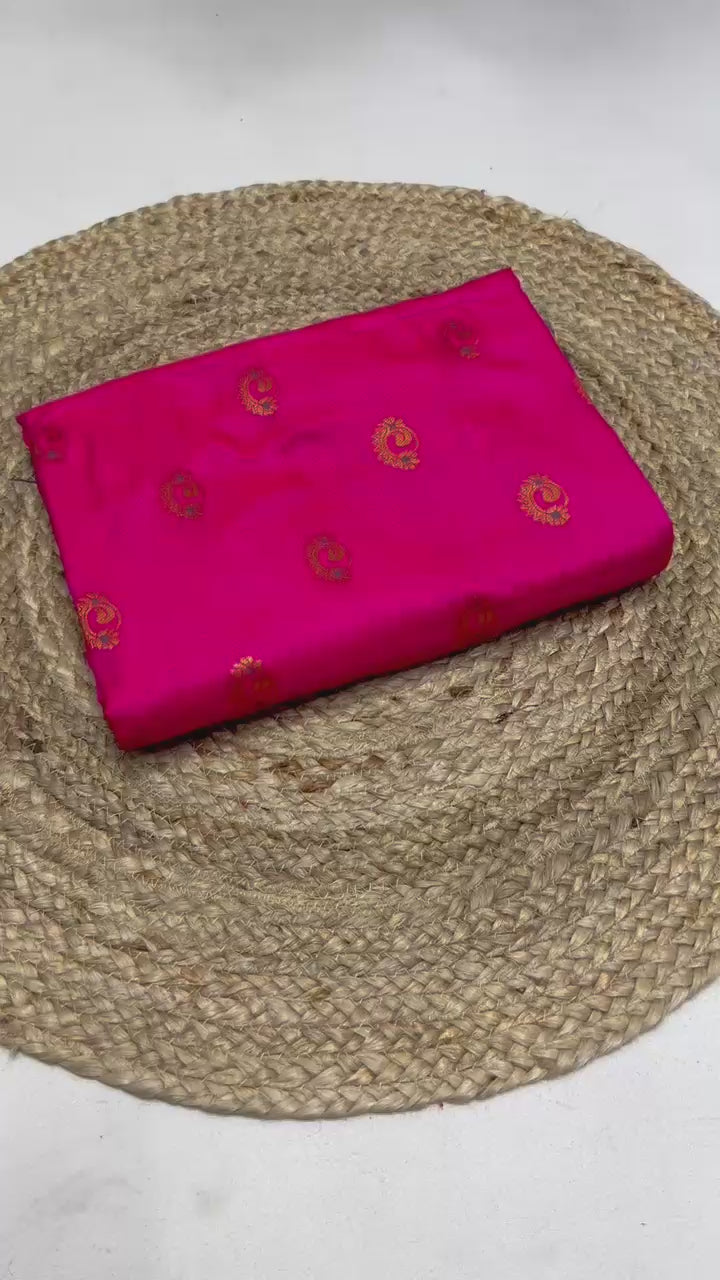 - Buttis: All-over Popat and Nathani Motifs, Intricately Woven to Elevate the Saree’s Grace as well Women.