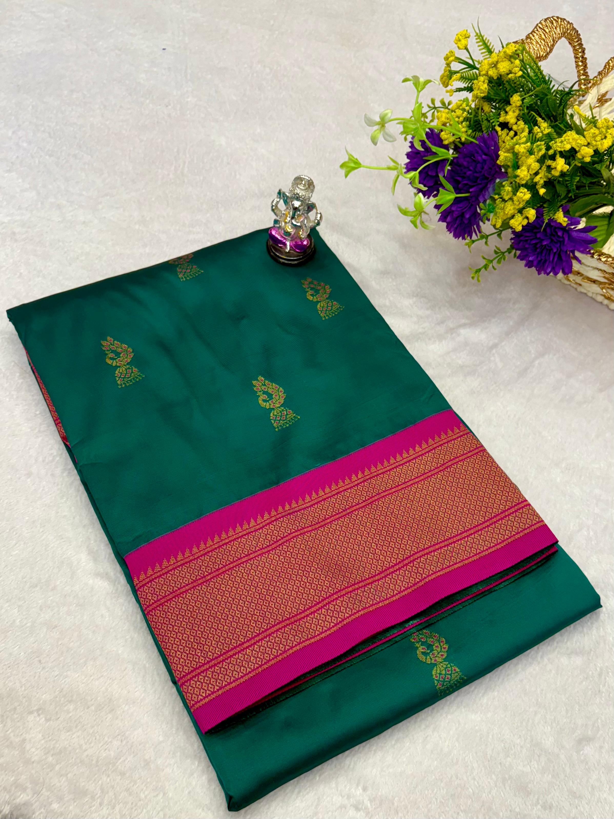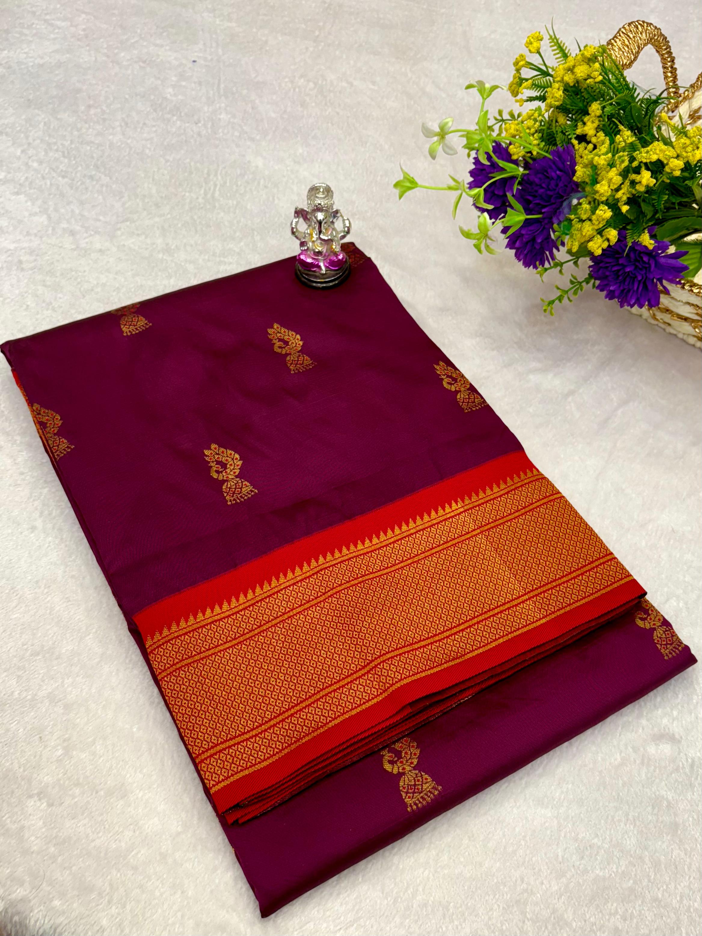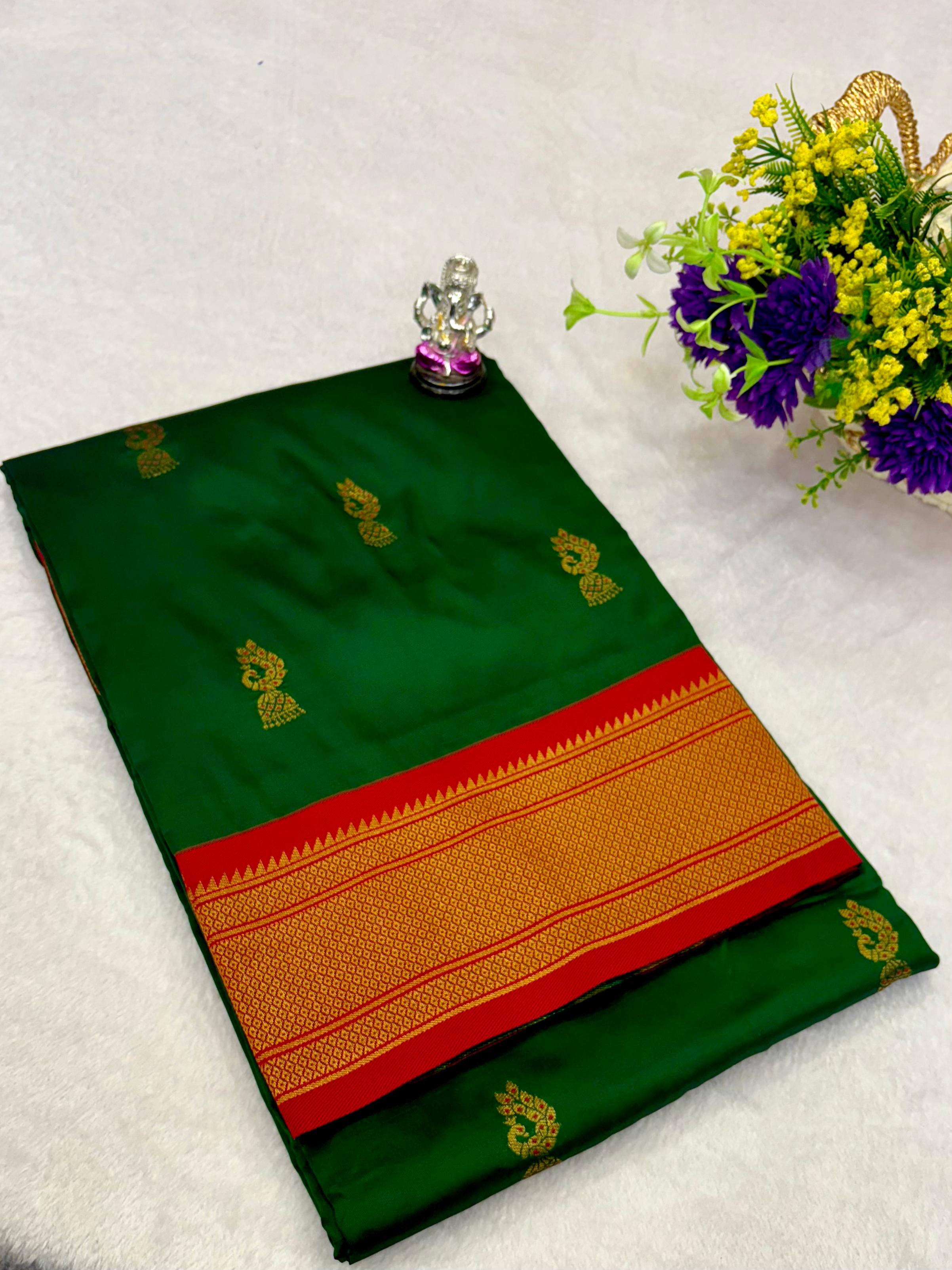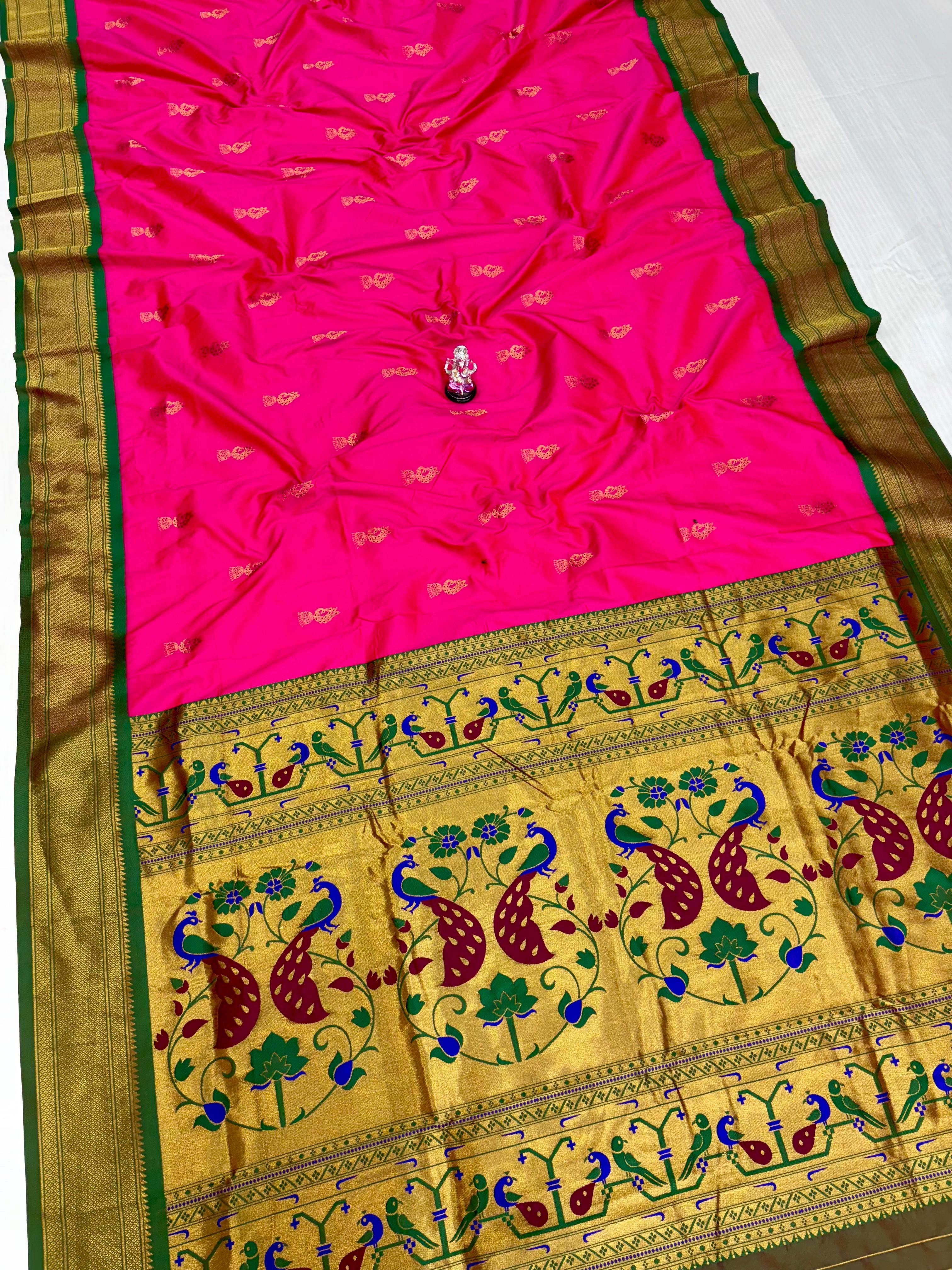 Soft Silk Mayuri Kadiyal Paithani Saree with Contrast Weaved Designer Blouse & Meena Pallu.