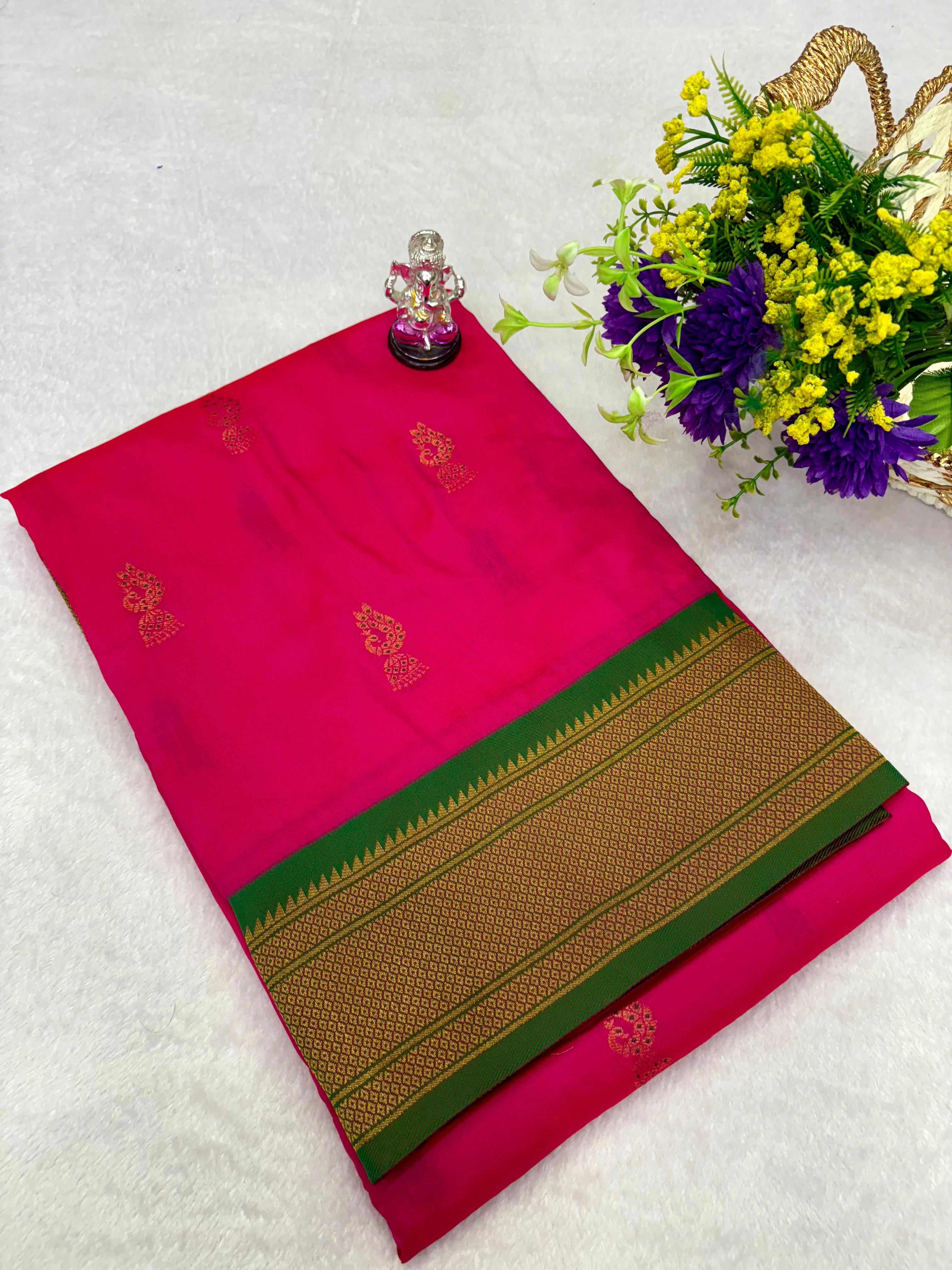 - Pallu: Rich in Zari Meena Pallu which Elavate looks of Women