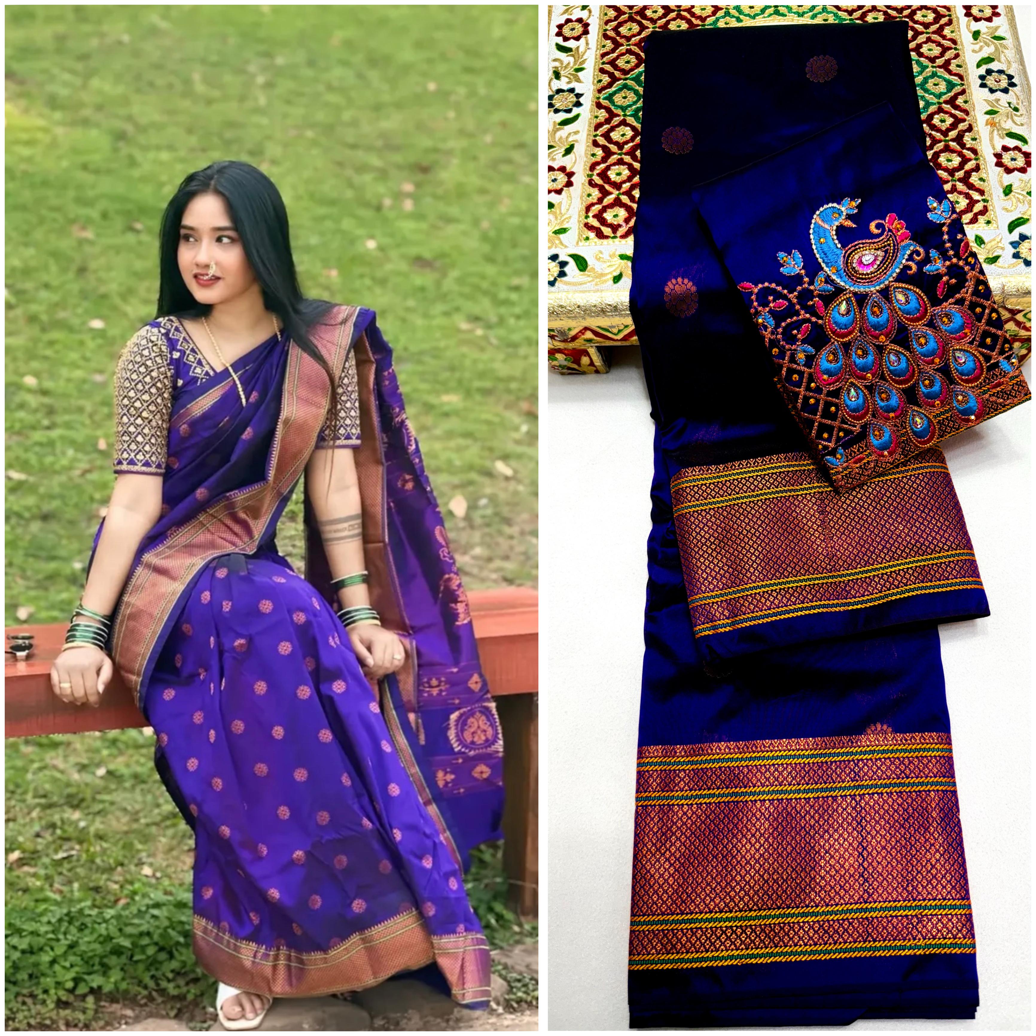 Tana Silk Premium Kalanjali Paithani Saree Kalanjali Buttis Handwork Embroidery Blouse Piece Specially for Wedding Season.