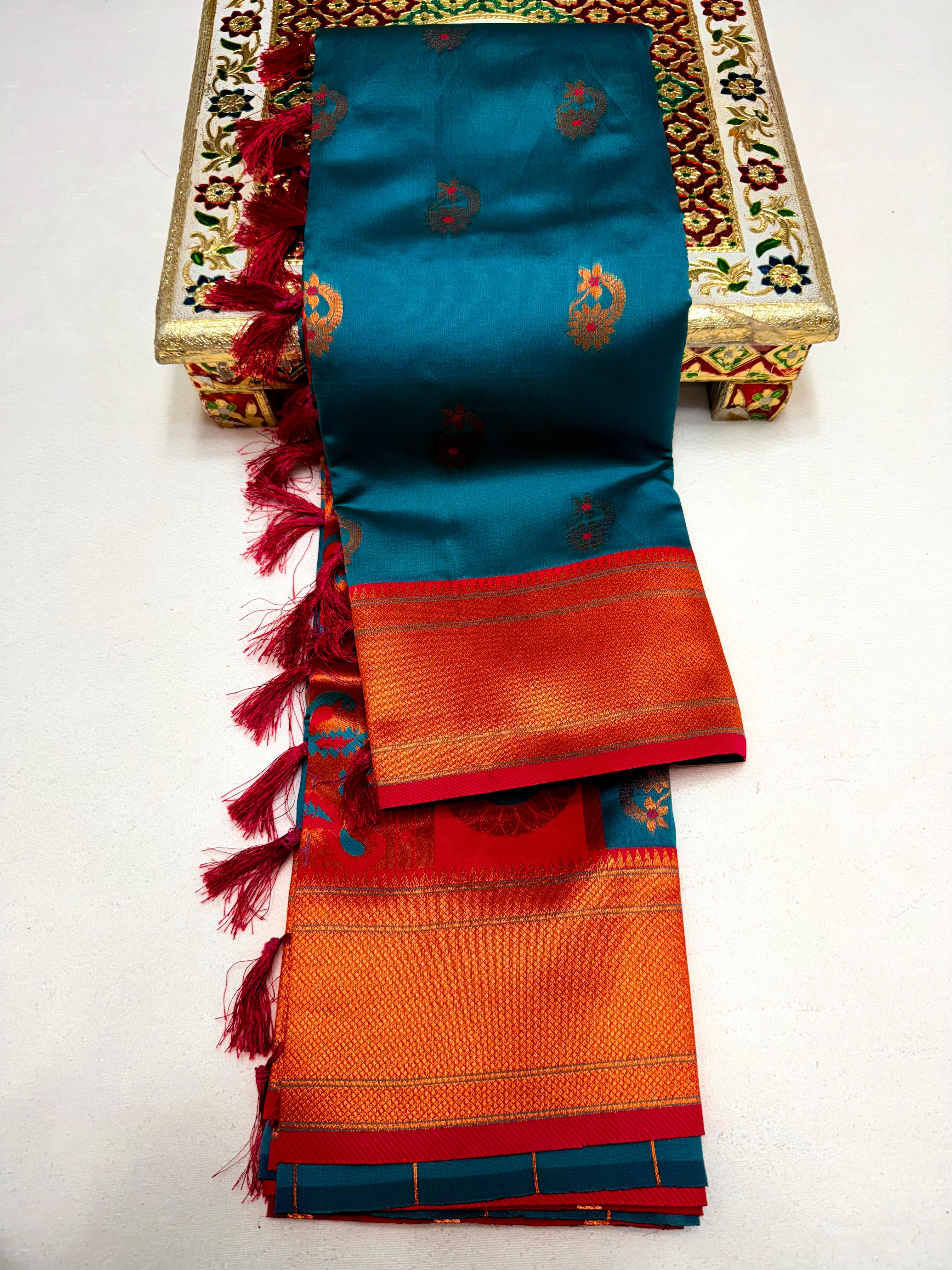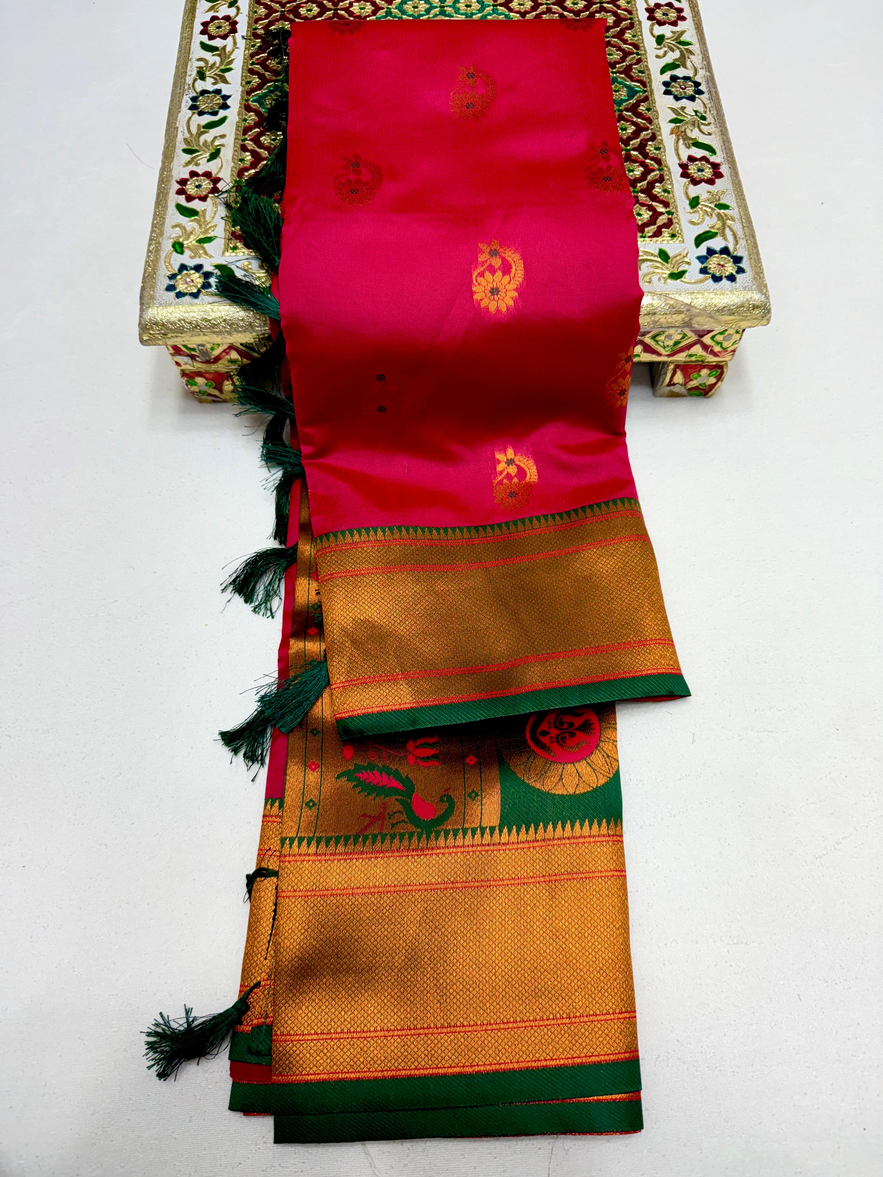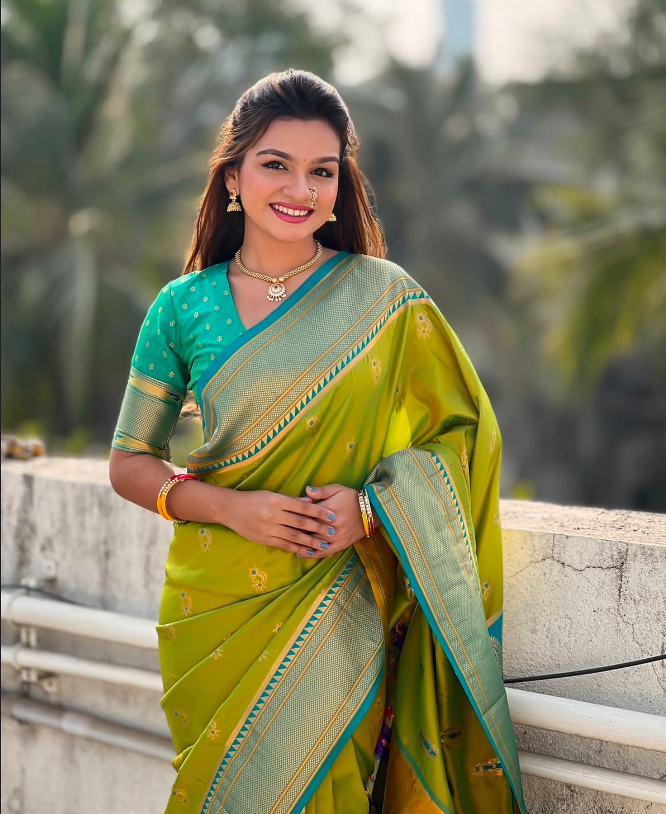 Trending Kadiyal Paithani with Nath Buttis with Tassles and Rich Pallu with Running Blouse