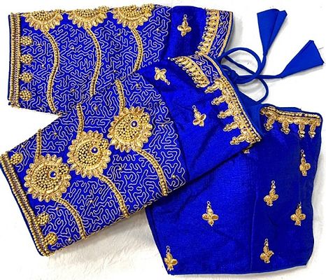 BLOUSE DESIGN BILLA 👉Blouse has jari and khatli hand work 👉Blouse material fentam silk 👉Blouse has froent open paterrn 👉Blouse size making 38 👉Alterupto 40