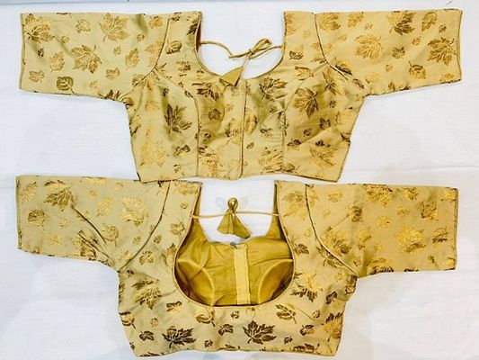 Stylish Golden Brocade Printed Stitched Blouse For Women