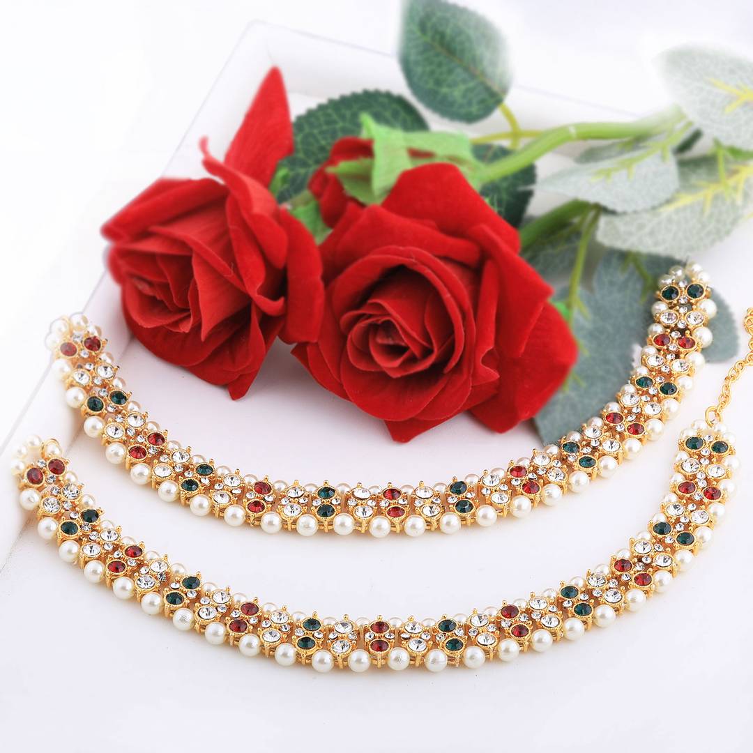 Gold Plated Attractive Designer Multi-Colour Kundan Anklet For Women