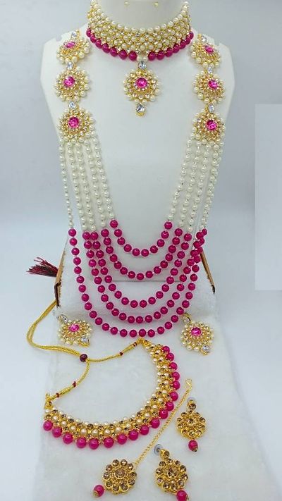Base Metal: Alloy Plating: Gold Plated Stone Type: Artificial Stones Beads Sizing: Adjustable Type: Necklace Earrings Maangtika Net Quantity (N): 2 Elite Beautiful Jewellery Sets Base Metal: Alloy Plating: Gold Plated Stone Type: Artificial Stones Beads Sizing: Adjustable Type: Necklace Multipack: 1 Sizes: Elite Elegant Jewellery Sets Base Metal: Alloy Plating: Gold Plated Stone Type: Artificial Stones Beads Sizing: Adjustable Type: As Per Image Multipack: 1 STYLING TIP: Wear it with a suit or a saree, and lehenga for an ethnic yet classy look. GIFTING: A perfect gift on the occasions like Wedding, Valentines, Birthdays etc. For Girls, Women, Wife and Girlfriends. JEWELLERY CARE : Keep the jewelry away from direct heat, water, perfumes, deodorants and other strong chemicals as they may react with the metal or plating. Store the jewelry when not in use in a storage box or a cloth pouch to retain its shine. Country of Origin: India Country of Origin: India