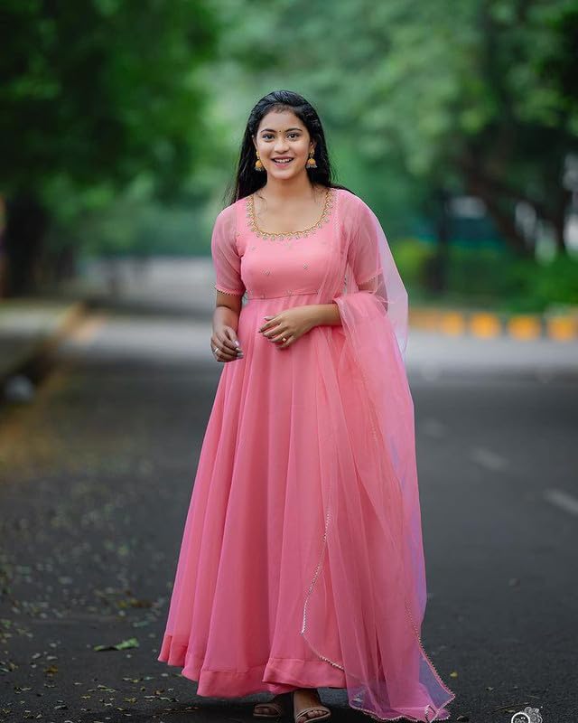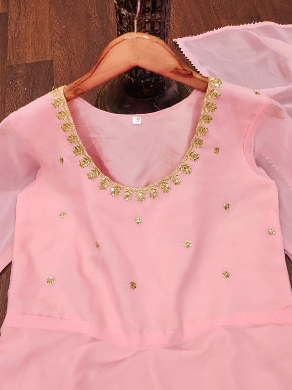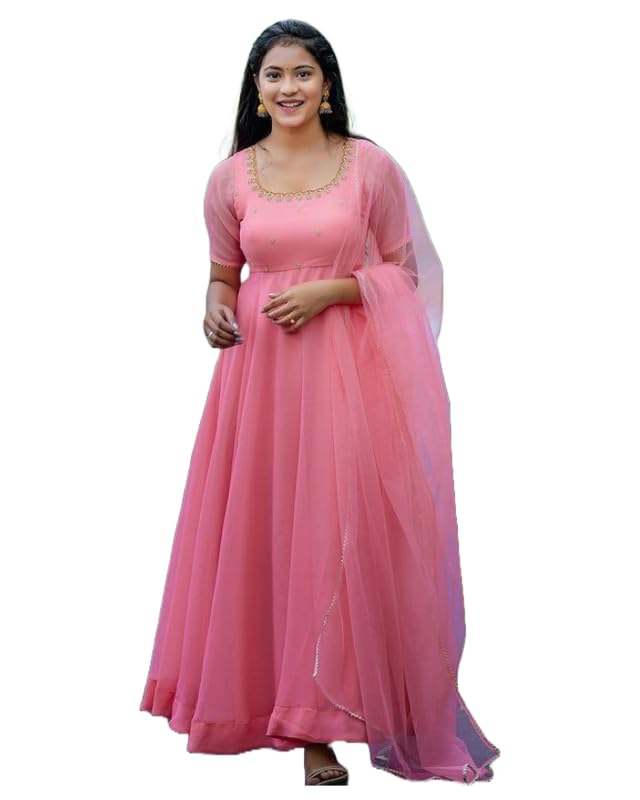 Elegant Women's Pink Anarkali Kurta Dupatta Set - Long Solid Georgette Kurta with Matching Dupatta