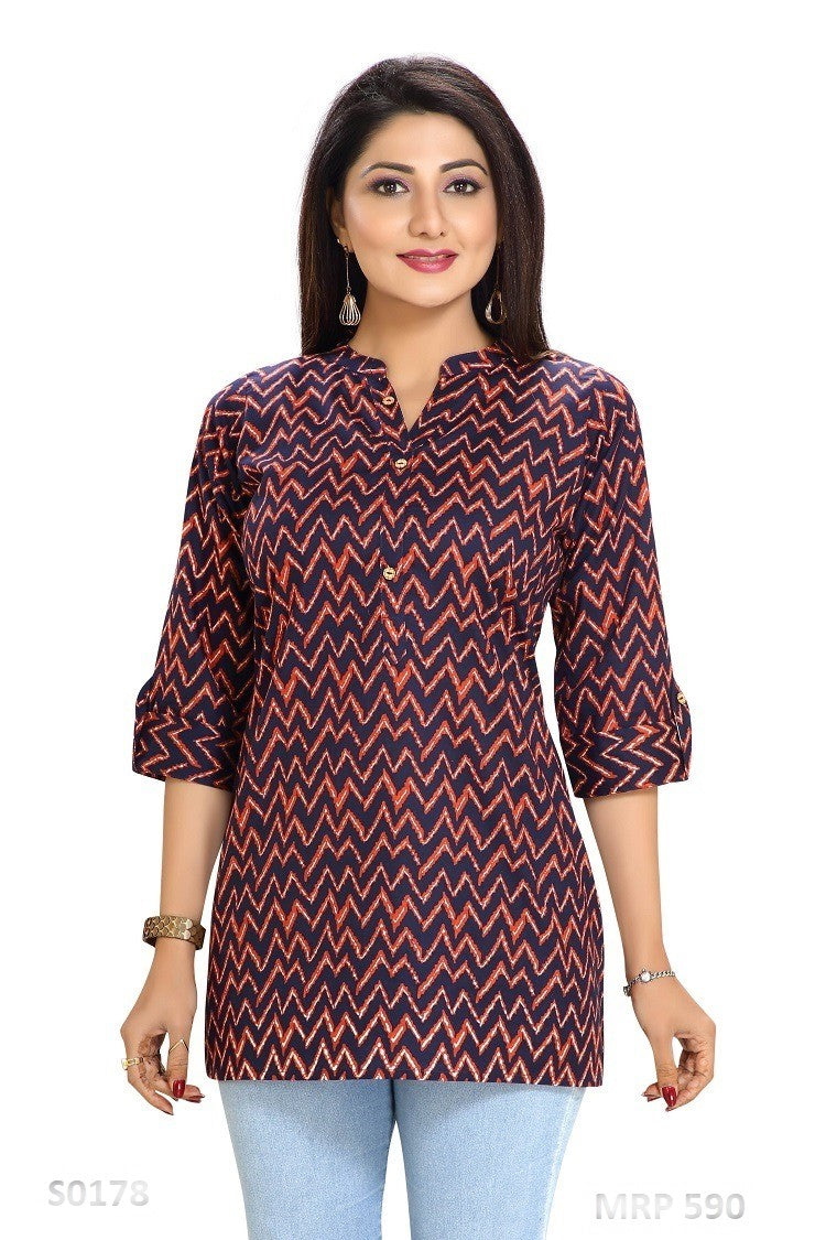 This maroon with black zigzag strip cotton tops for women is perfect for party wear. The zigzag strip adds a unique touch to the design, while the cotton material ensures comfort and breathability. Elevate your style with this trendy and versatile top.