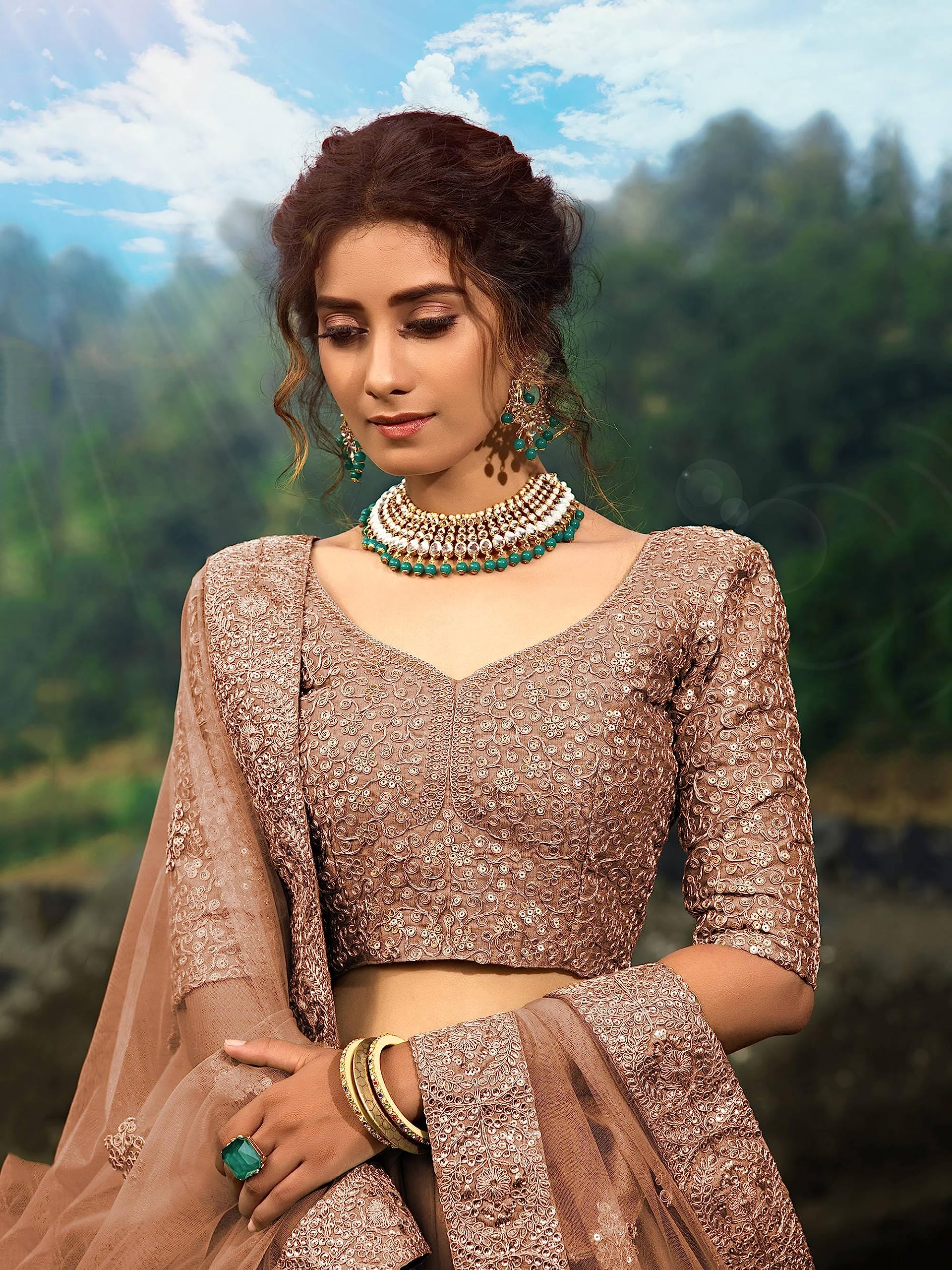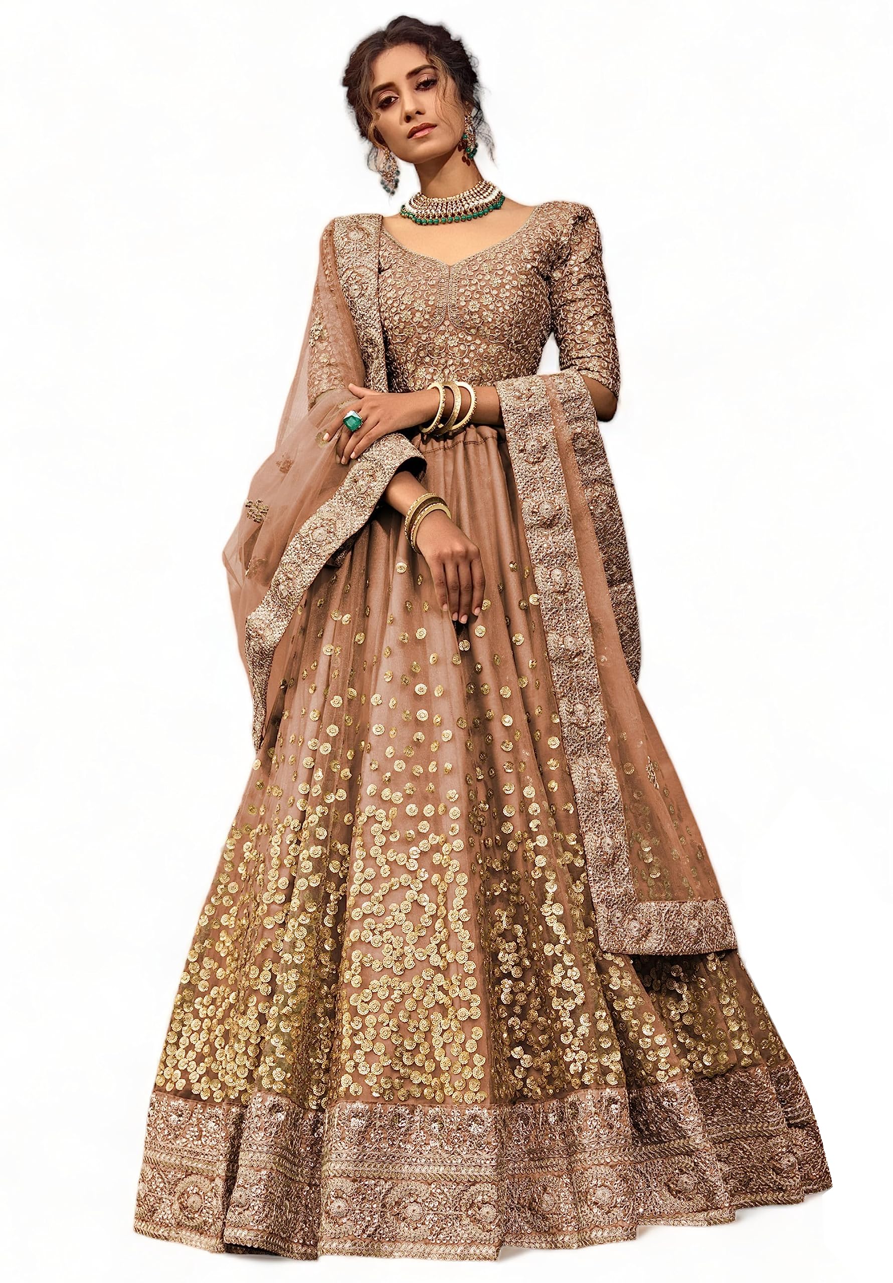 Zeel Clothing Women's Net Semi-Stitched Lehenga Choli Brown Wedding Bridal Latest New Free Size