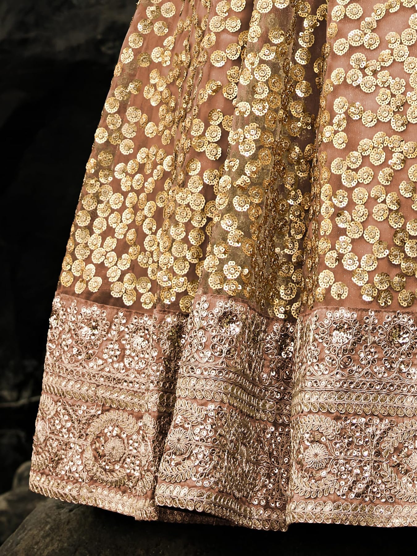 - Lehenga Work: Zari, Dori, Sequins and Thread Embroidery Work; Blouse Work: Zari, Dori, Sequins and Thread Embroidery Work; Dupatta Work: Zari, Dori, Sequins and Thread Embroidery Work