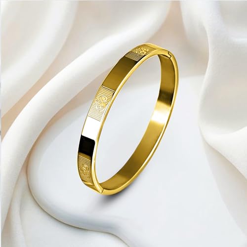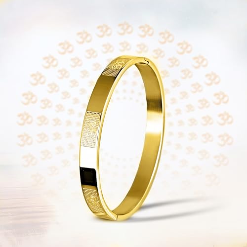 Anti Tarnish 18k Gold Plated OM Bangle Stainless Still Bracelet-Kada for Boys and Men
