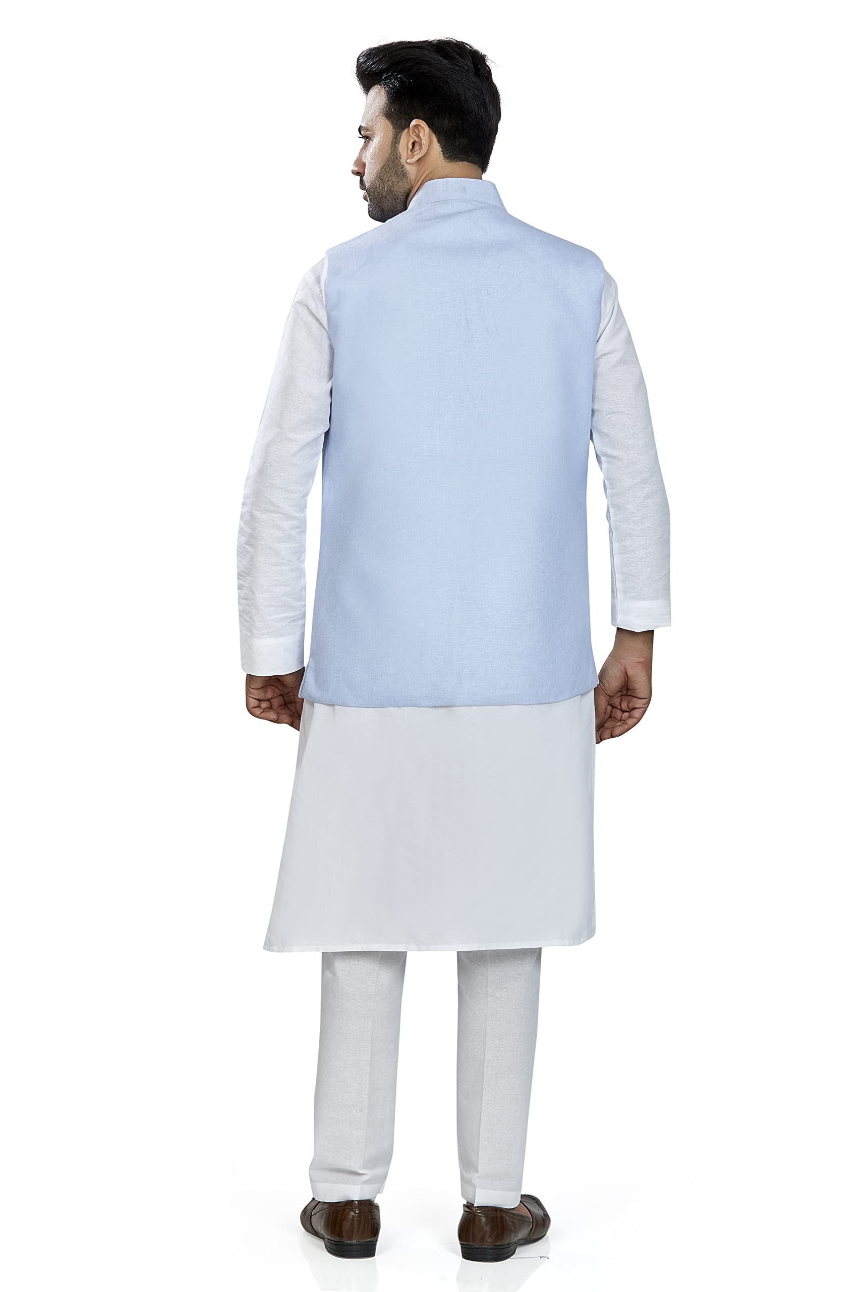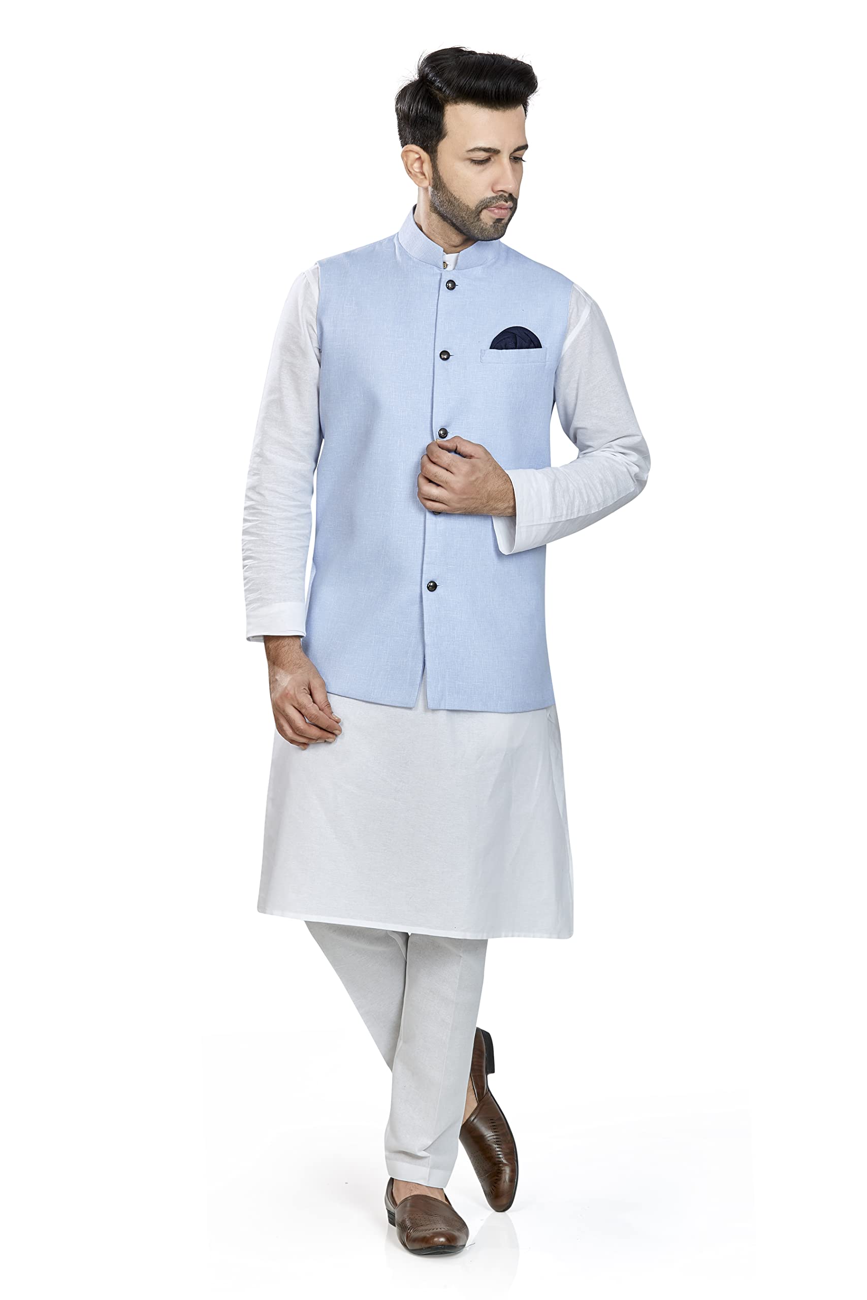 BE ACTIVE Men's Linen Blend Nehru Jacket With Mandarin Collar || Ethnic Koti For Men || Men Koti Formal|| Men Koti Wedding (RFKT0001-12 (Blue)-XXL)