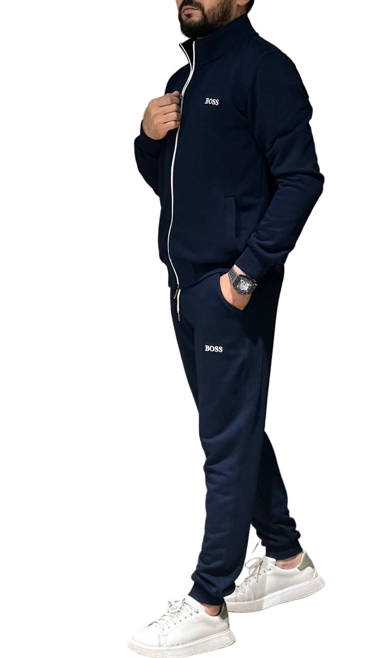 BOSS Premium Fleece Cotton Tracksuit – Winter Zipper Set