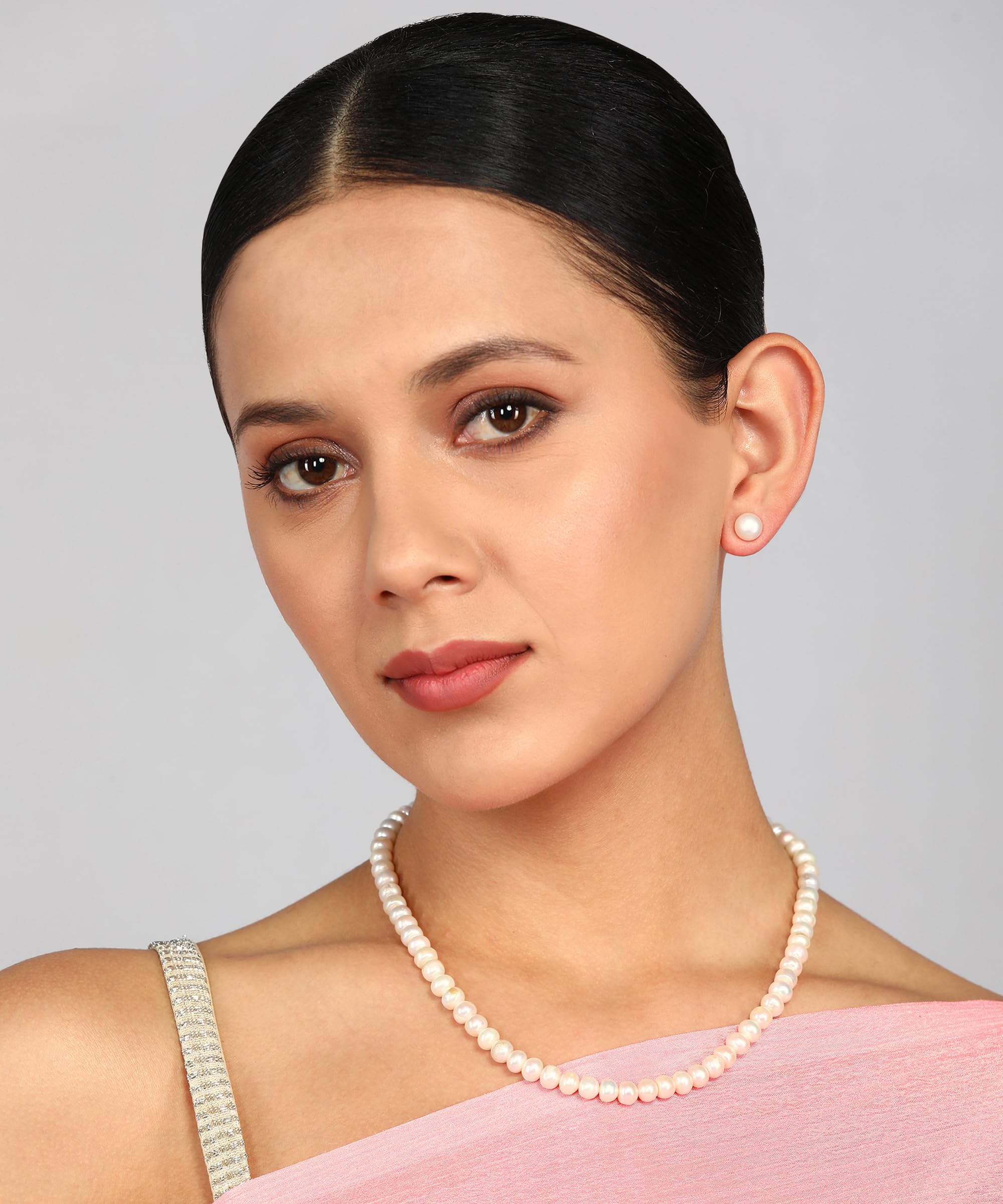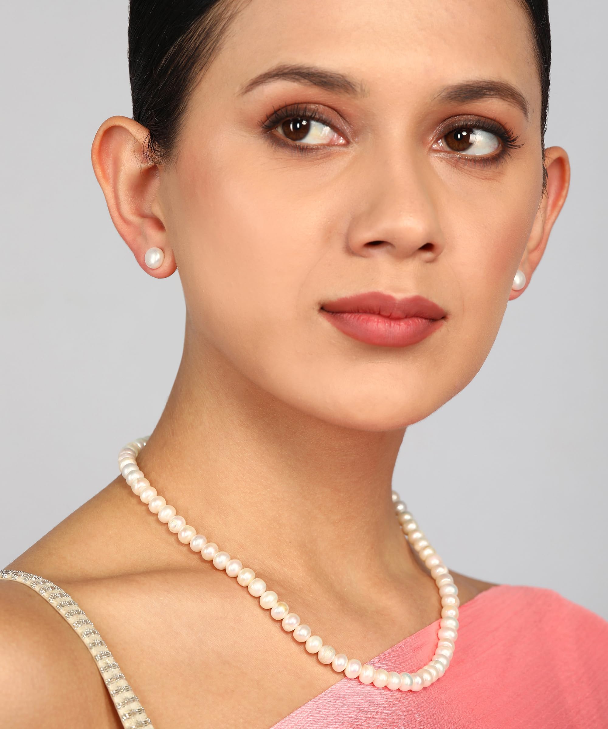 Natural Fresh Water Pearls Stand Necklace Set Pearl Size 7 To 8 Mm