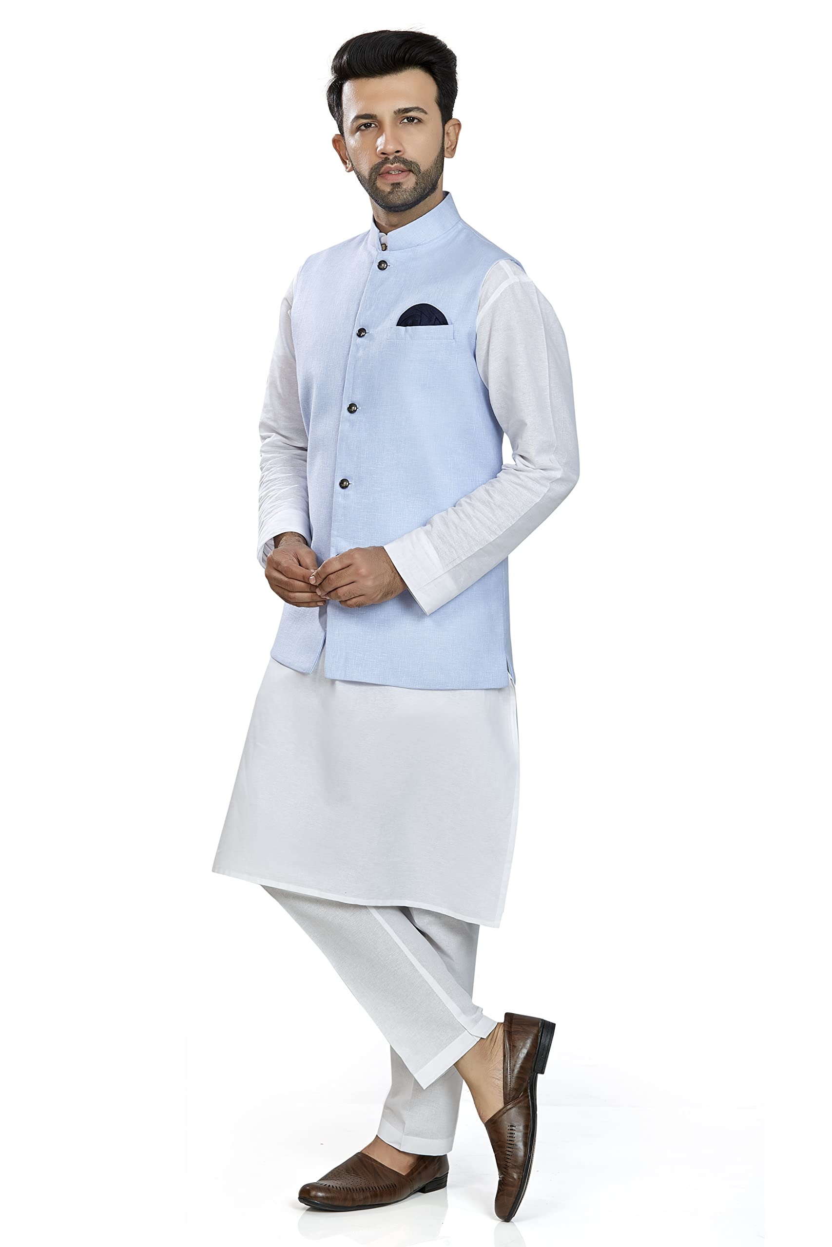 BE ACTIVE Men's Linen Blend Nehru Jacket With Mandarin Collar || Ethnic Koti For Men || Men Koti Formal|| Men Koti Wedding (RFKT0001-12 (Blue)-XXL)
