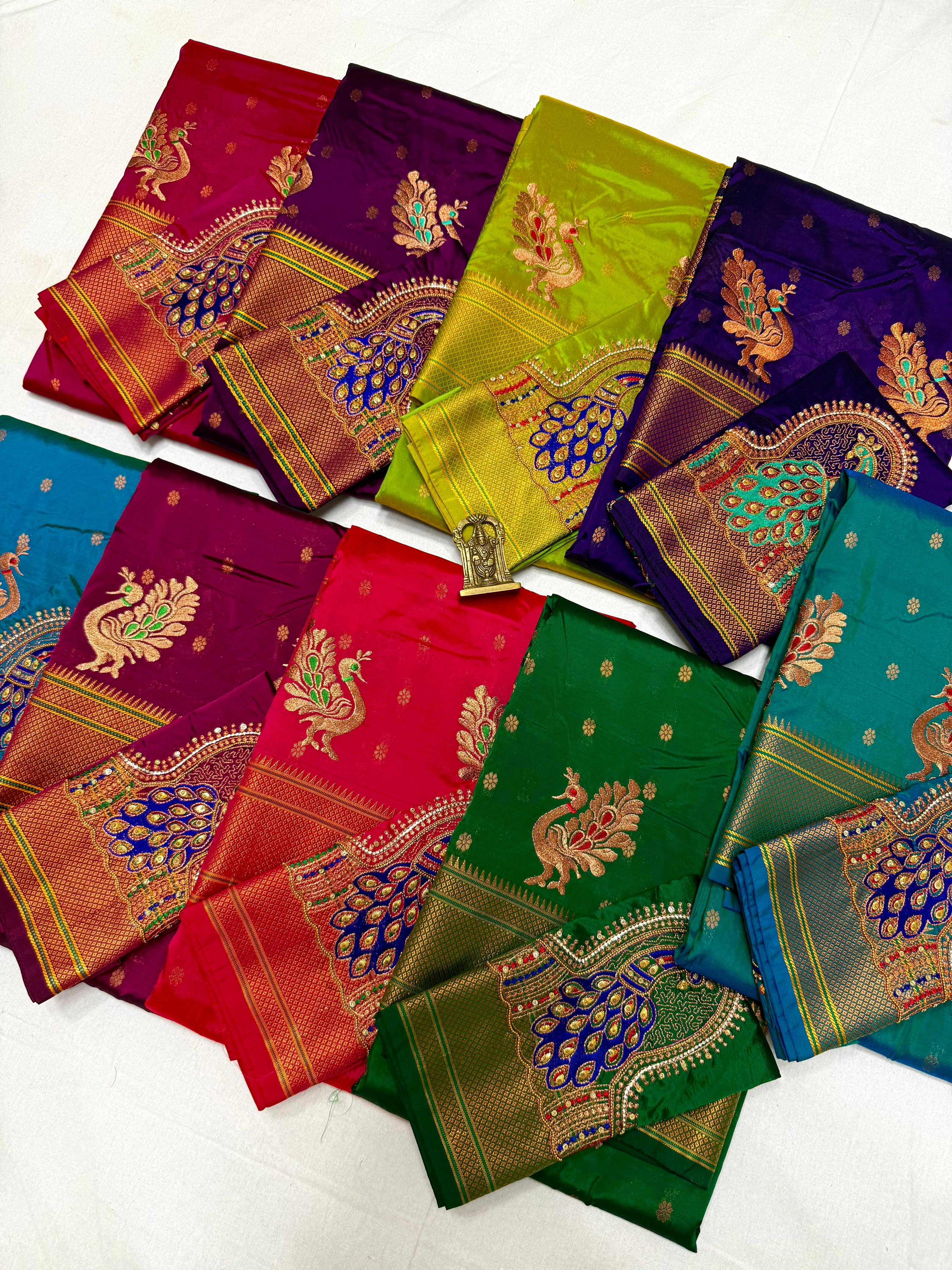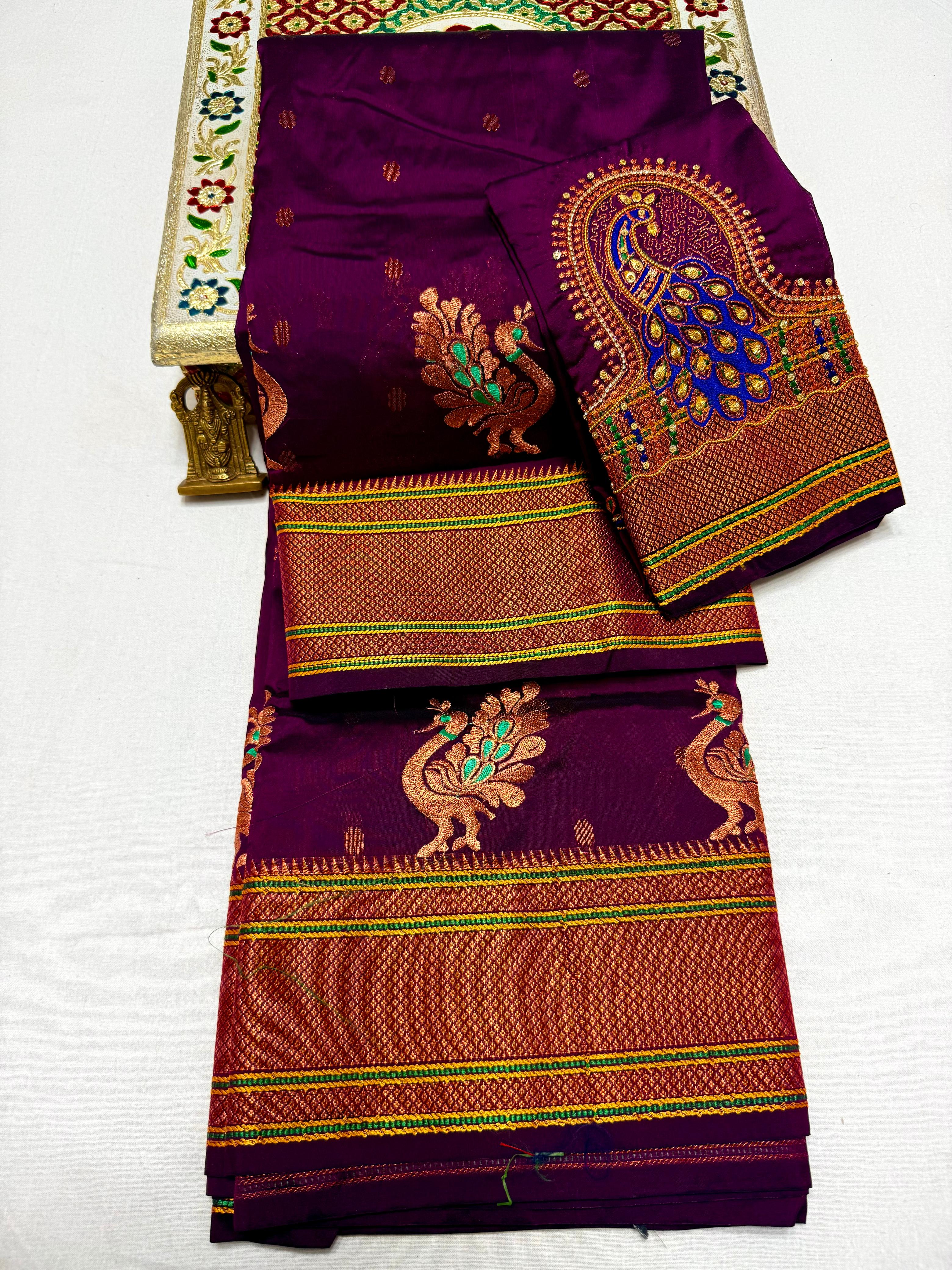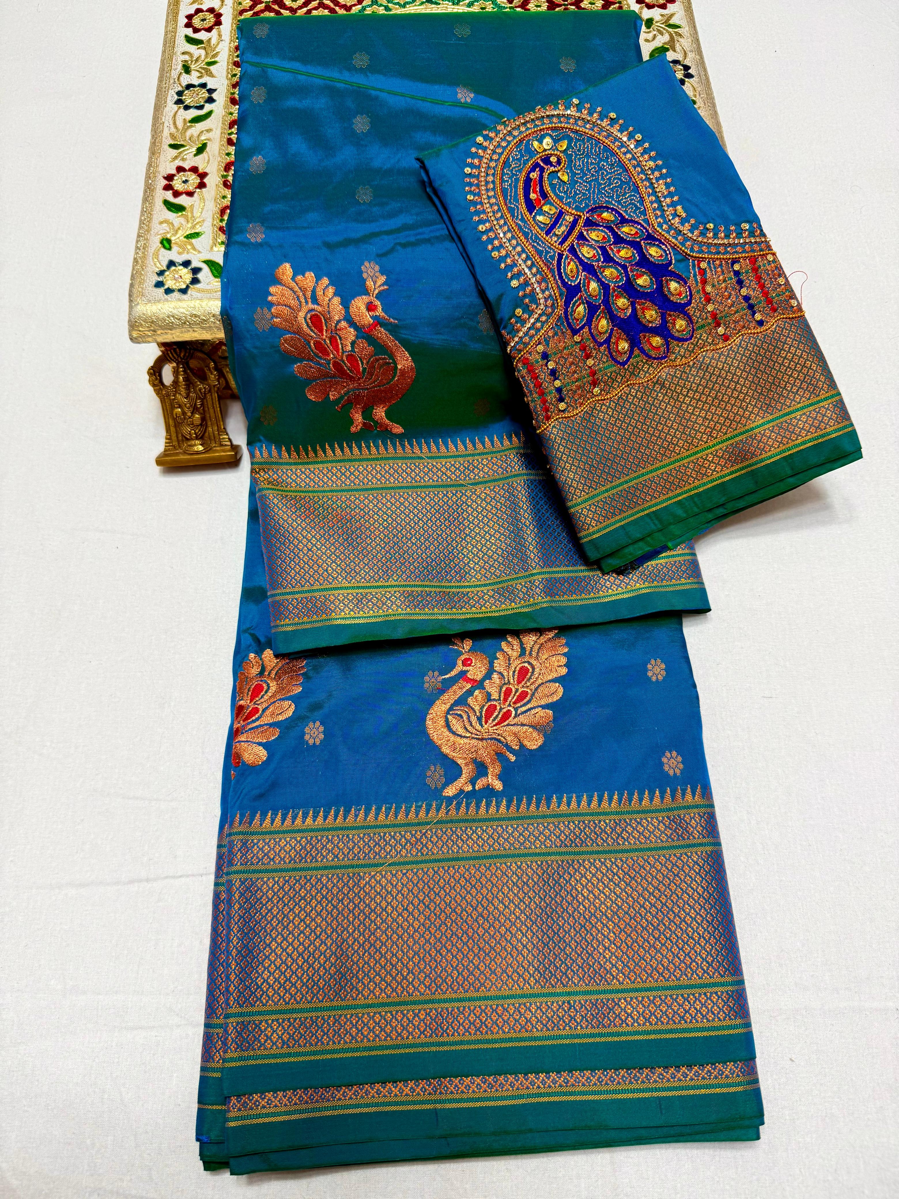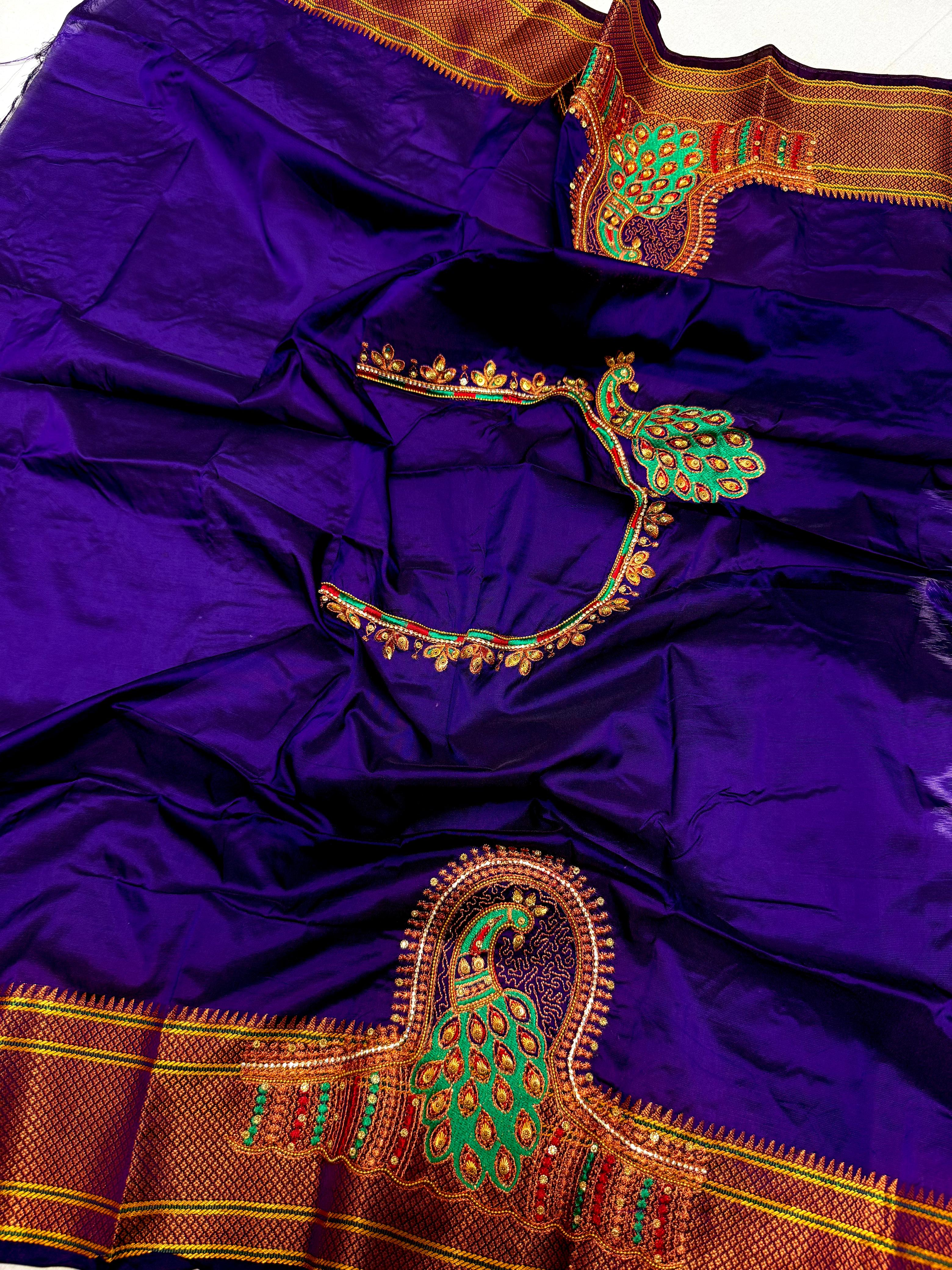 Festive Traditional Pure Handmade Kalanjali Paithani with Aariwork Blouse