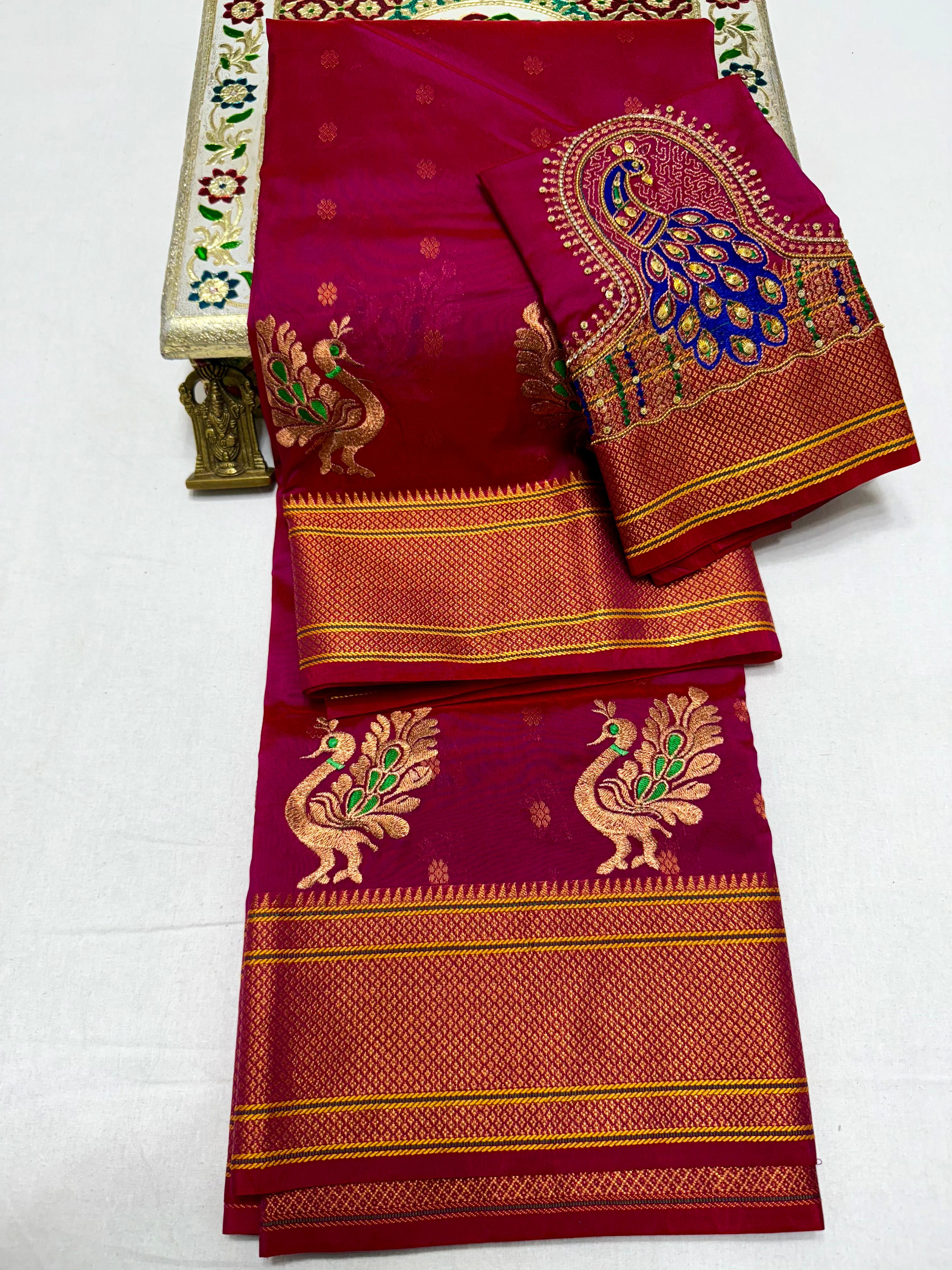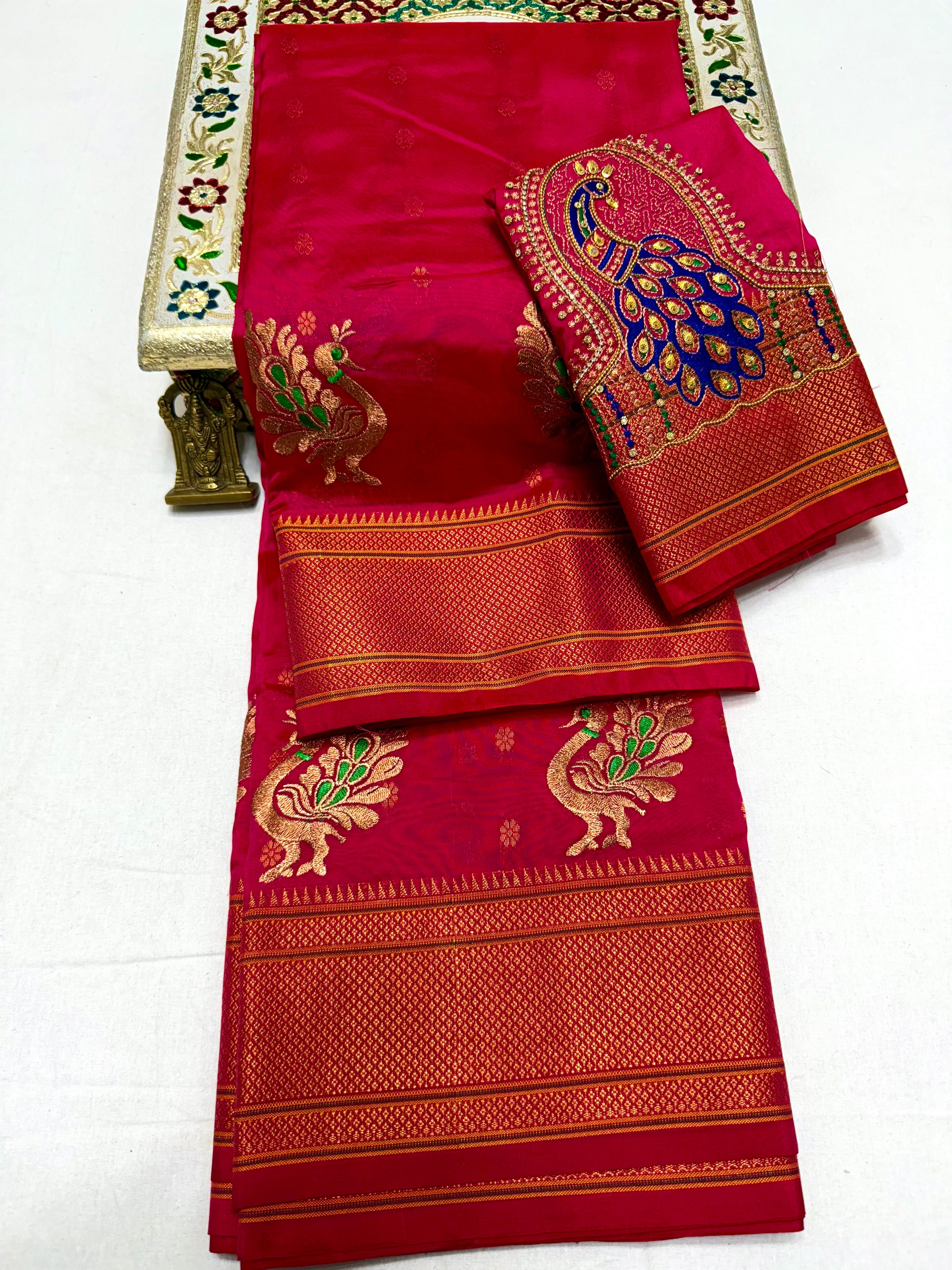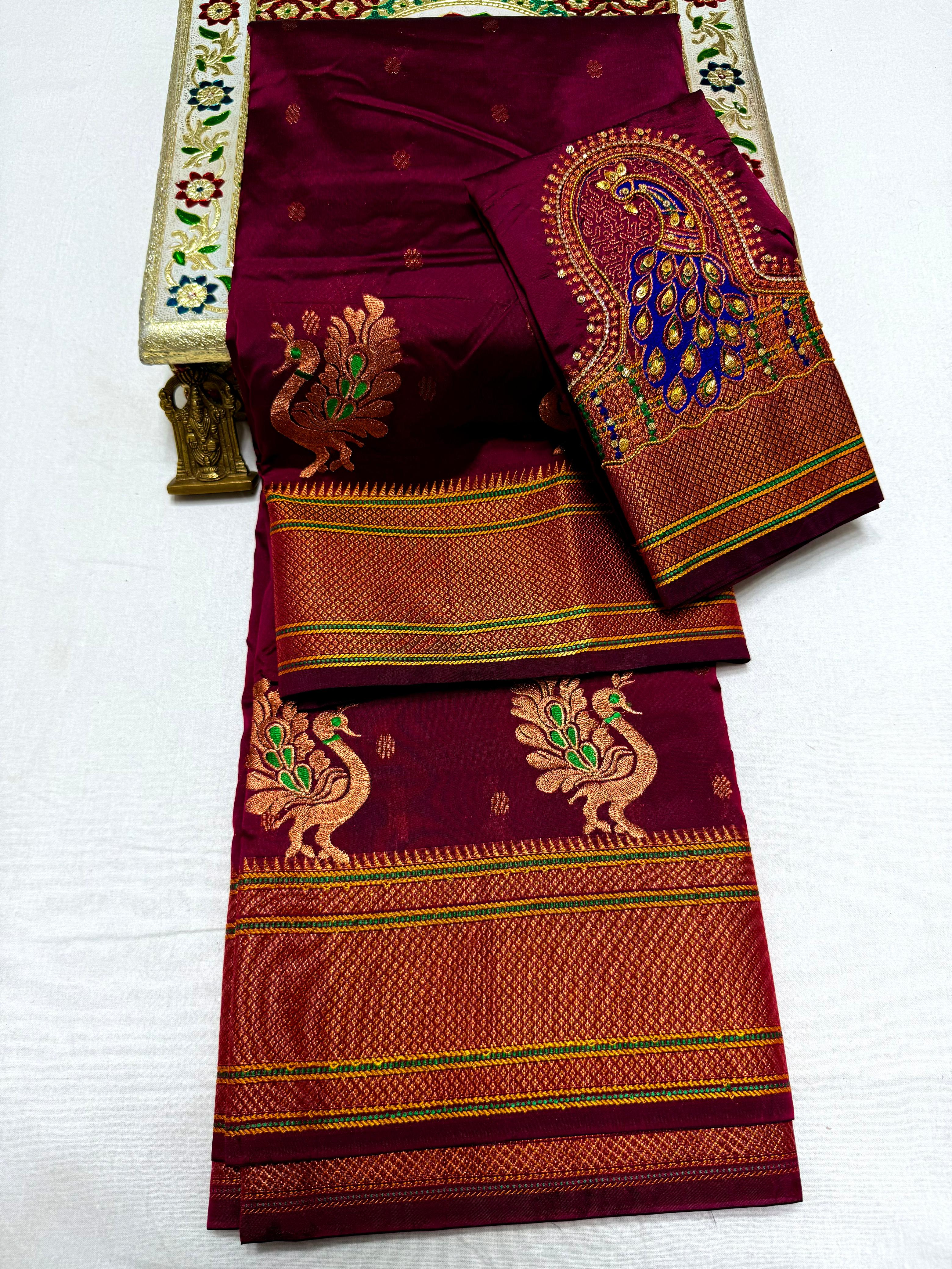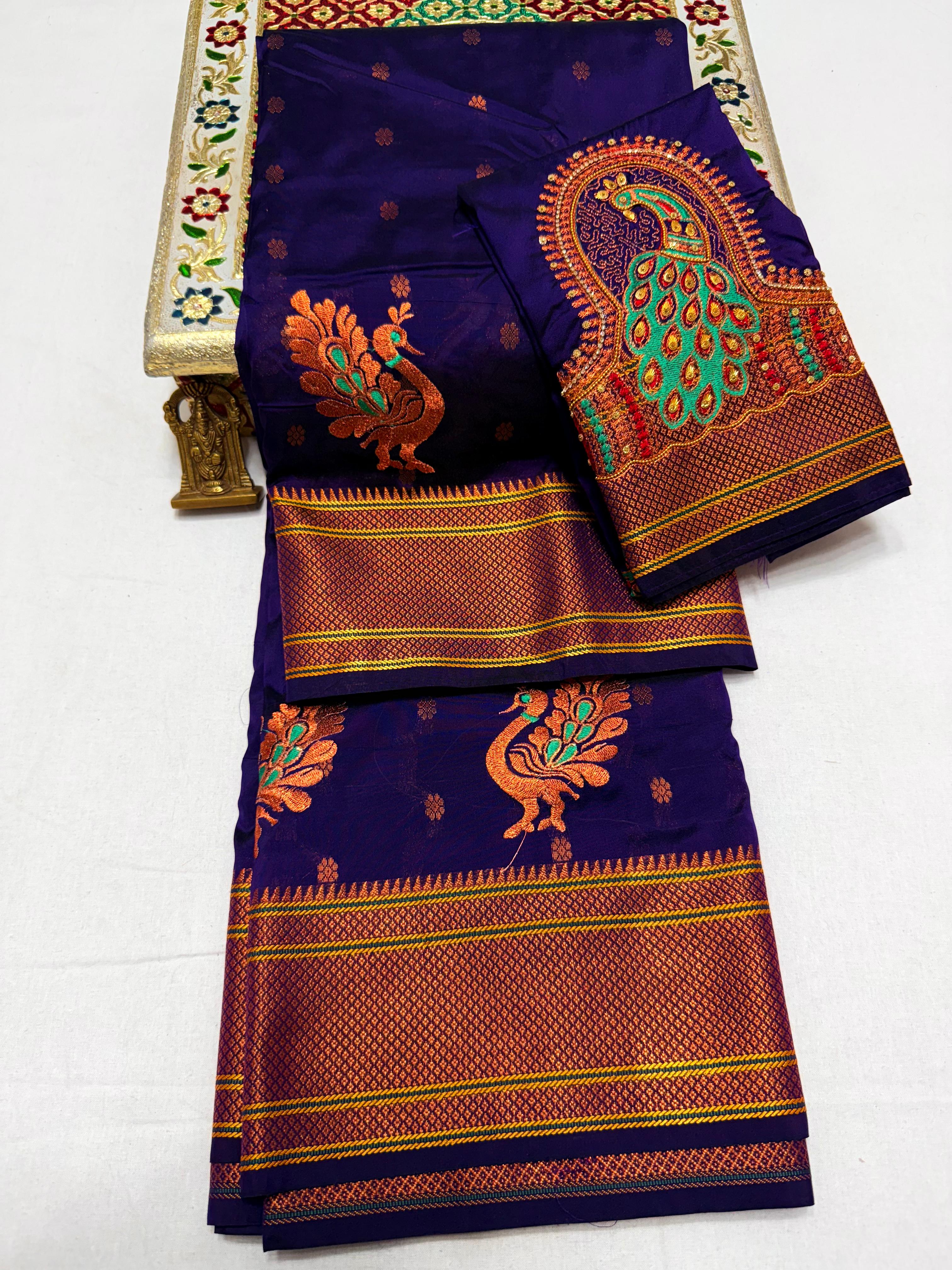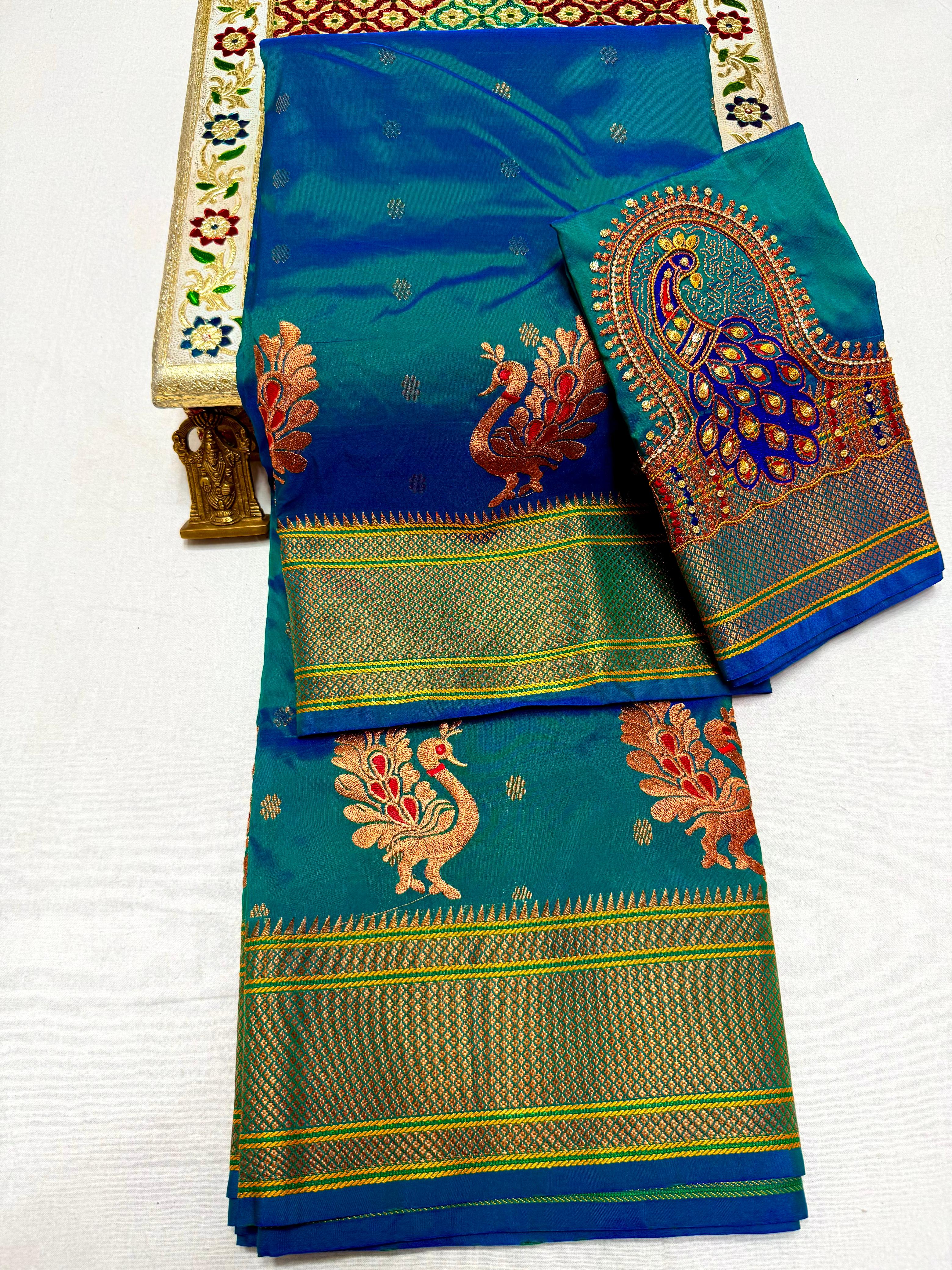 Festive Traditional Pure Handmade Kalanjali Paithani with Aariwork Blouse