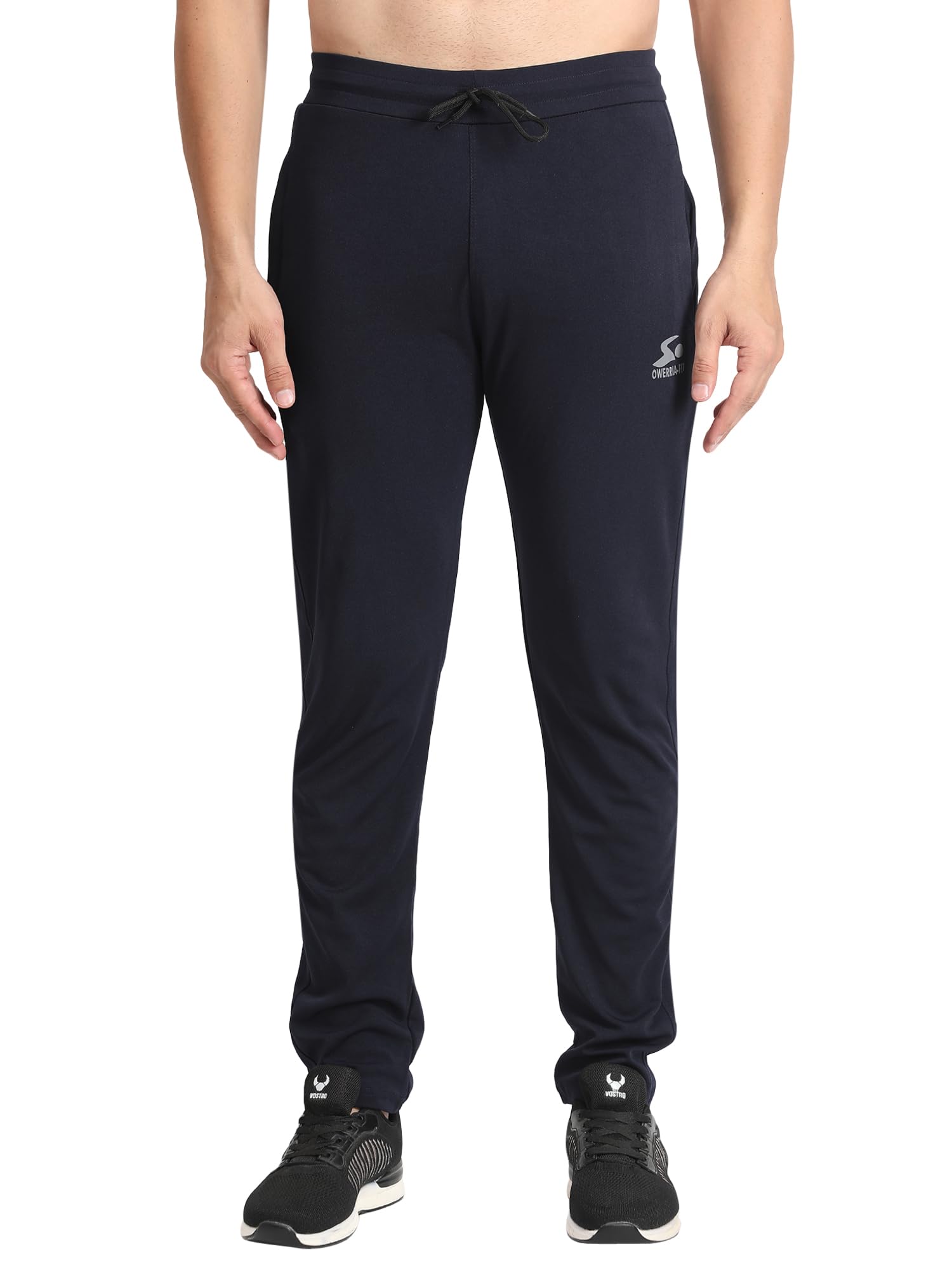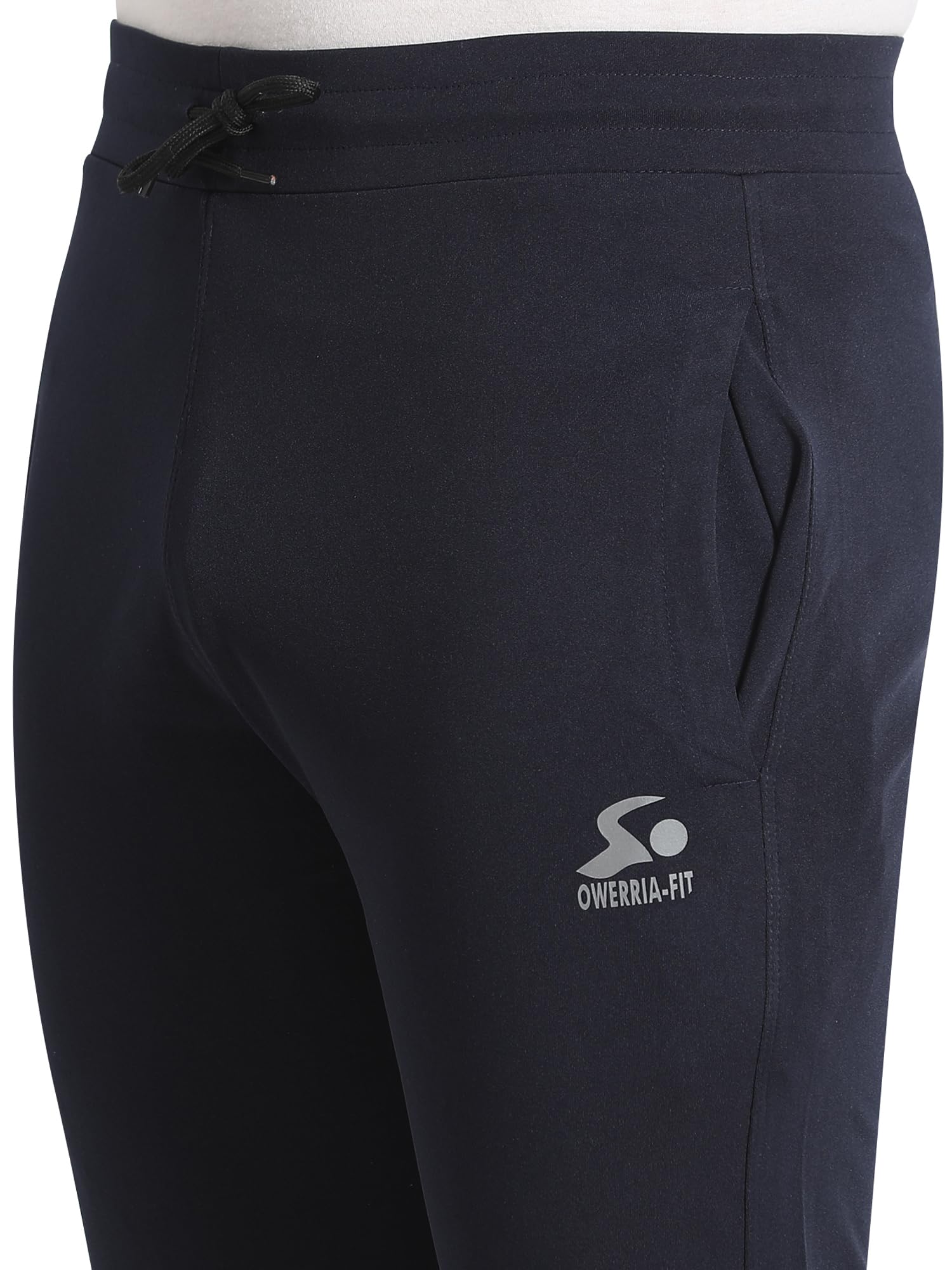 OWERRIA FIT Lycra Track Pants Regular Fit Two Side Pocket One Side Zip Combo Pack 2 (in, Alpha, L, Regular, Navy Blue - Amber)