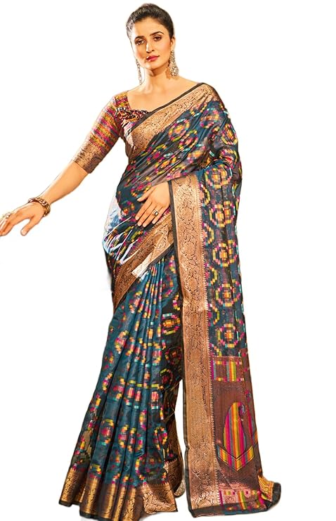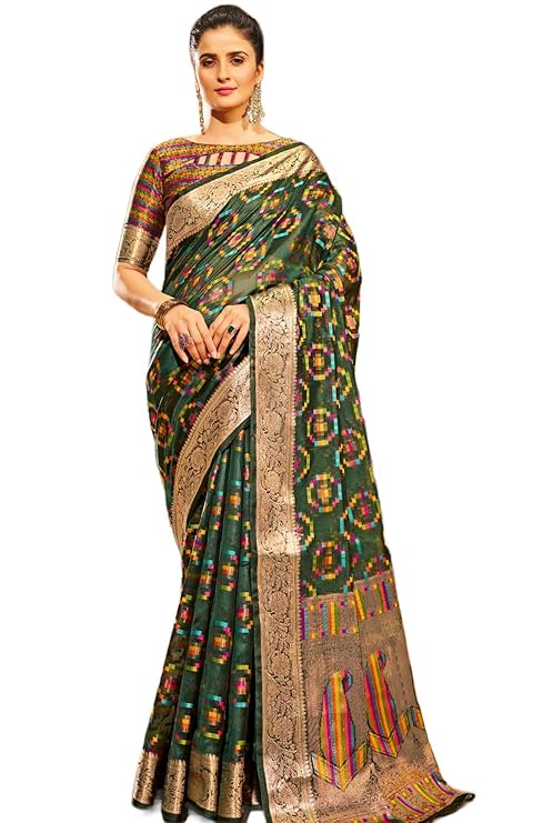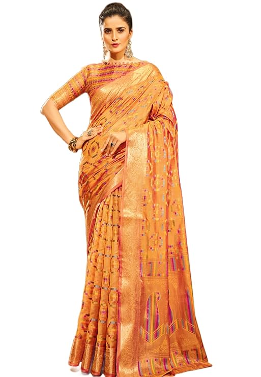 Swornof Women's kanjivaram banarasi silk saree for Patola festival Wedding silk with rich pallu Design sarees for women with blouse piece