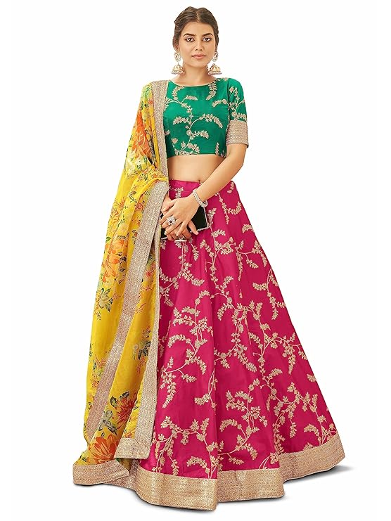 - Package Contains: 1 Semi-Stitched Lehenga with Dupatta and unstitched Blouse; Wash Care: Dry Clean Only