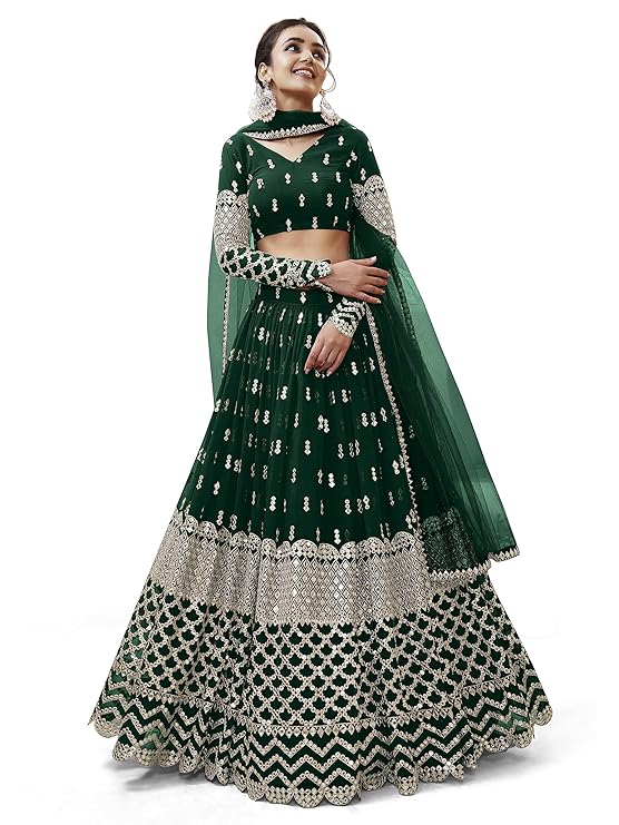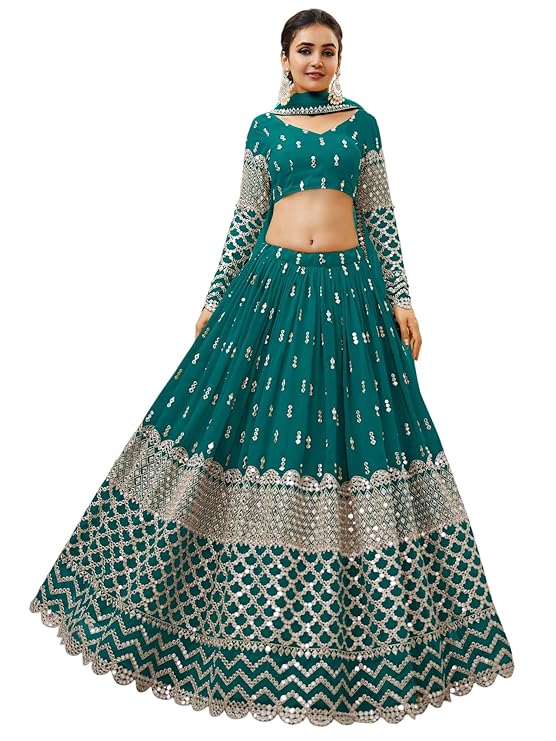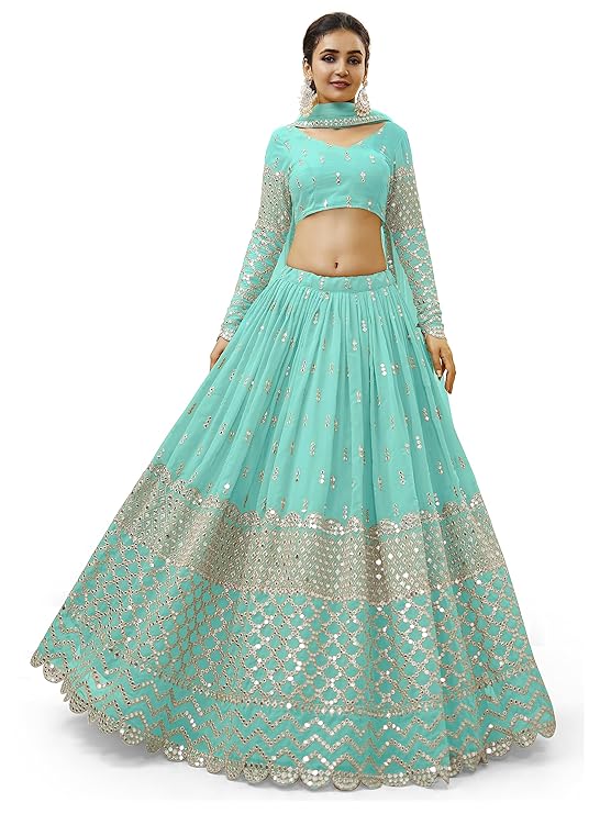 Zeel Clothing Women's Sequins Zari Embroidered Georgette Semi Stitched Lehenga Choli With Dupatta (311-Pista-Wedding-Bridal-Latest-New; Free Size) (Pista)