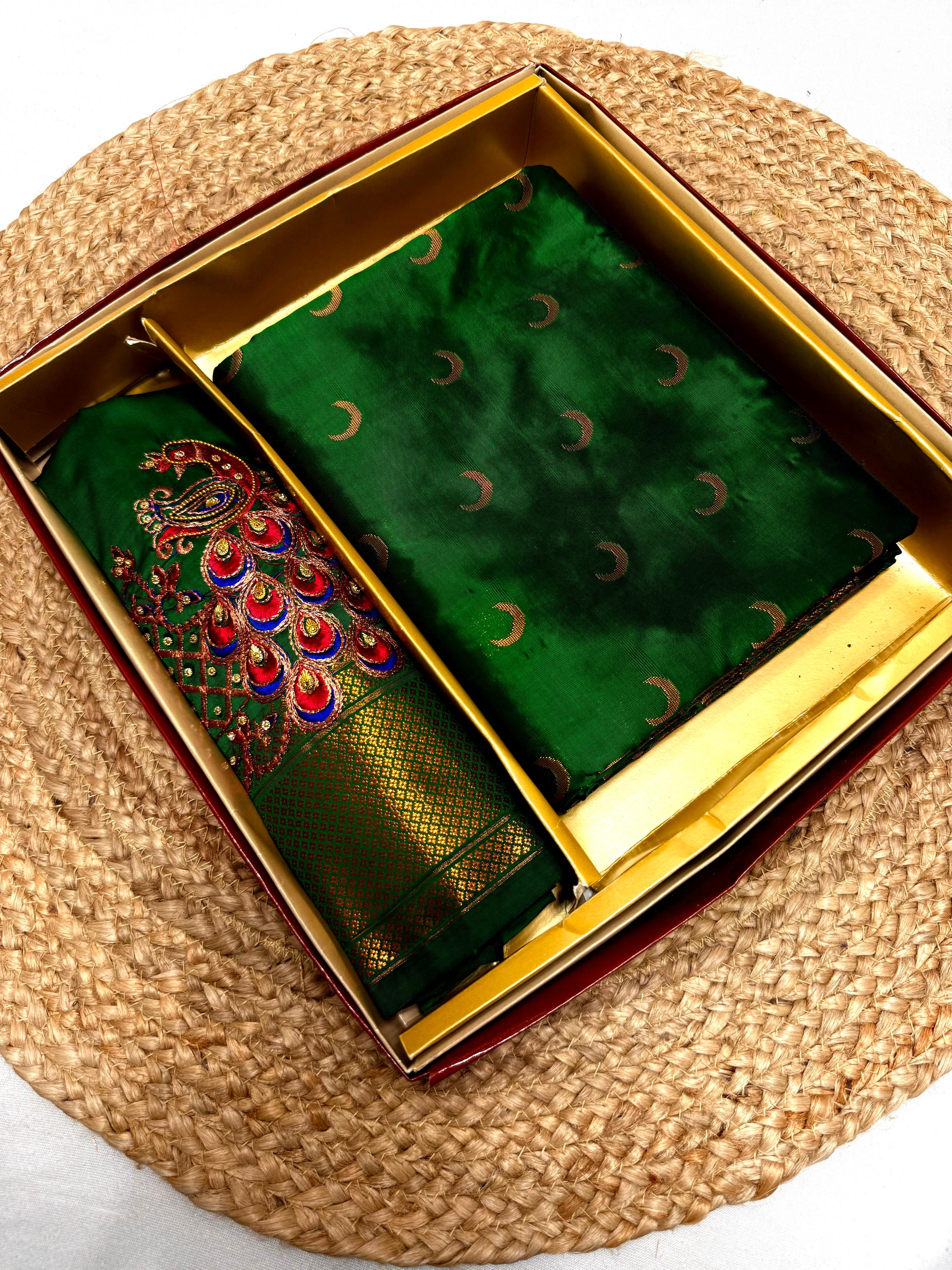Handmade Chandrakala Paithani Butto Allover with Hand Work Wovern Embroidery Blouse in Tana Soft Silk , Ultra Unique Combination.
