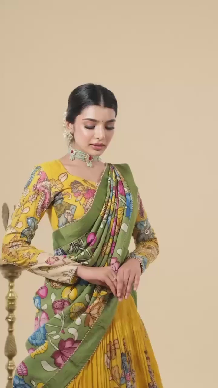 Elavate style with Trendy Chinon Lehenga Choli & Dupatta with Kalamkari Print attractive lace on border.