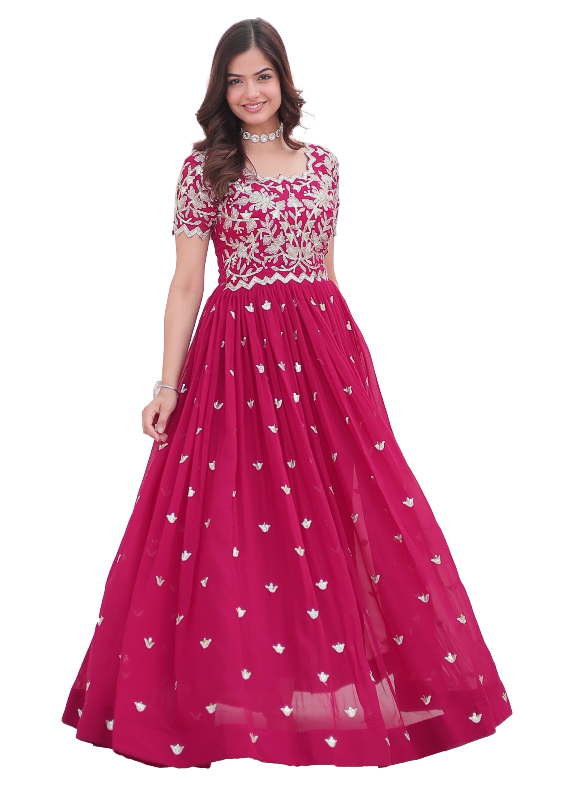 Fashion Basket Pink Anarkali Kurta Set with Embroidered Work for Women (in, Alpha,Regular, Standard)