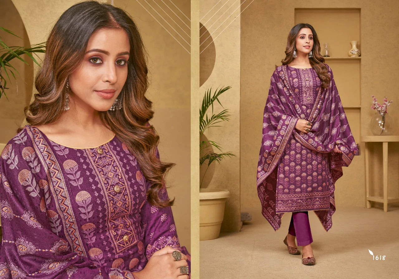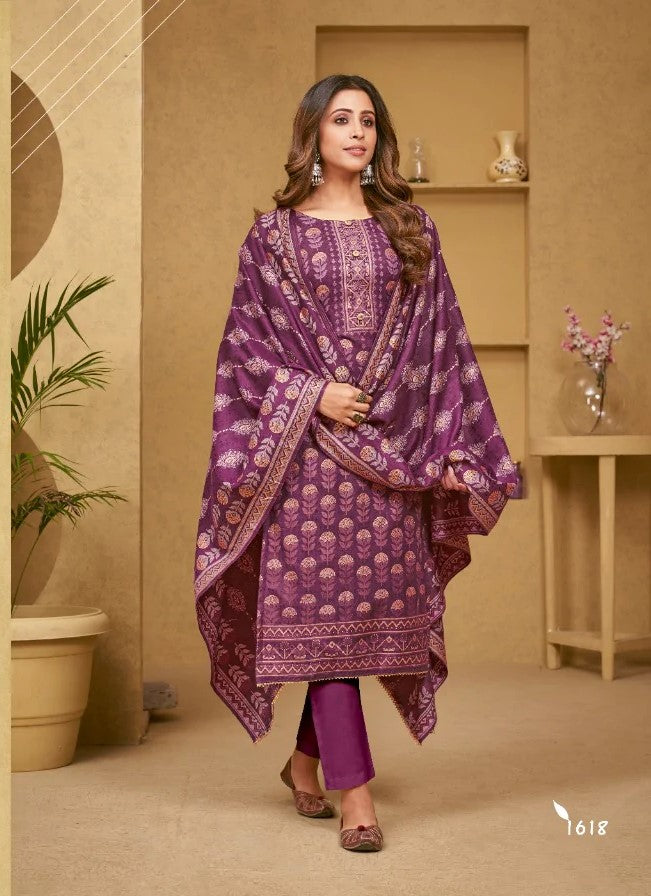 Pashmina Premier Gulnnar Kurti Pant Dupatta set in Purple