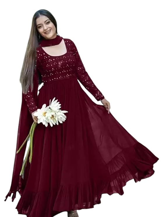 Rebika Trendz Elegant Anarkali Gown with Dupatta || Women's Ethnic Dress with Embroidered Detailing || Perfect for Weddings, Festivals & Special Occasions Blue