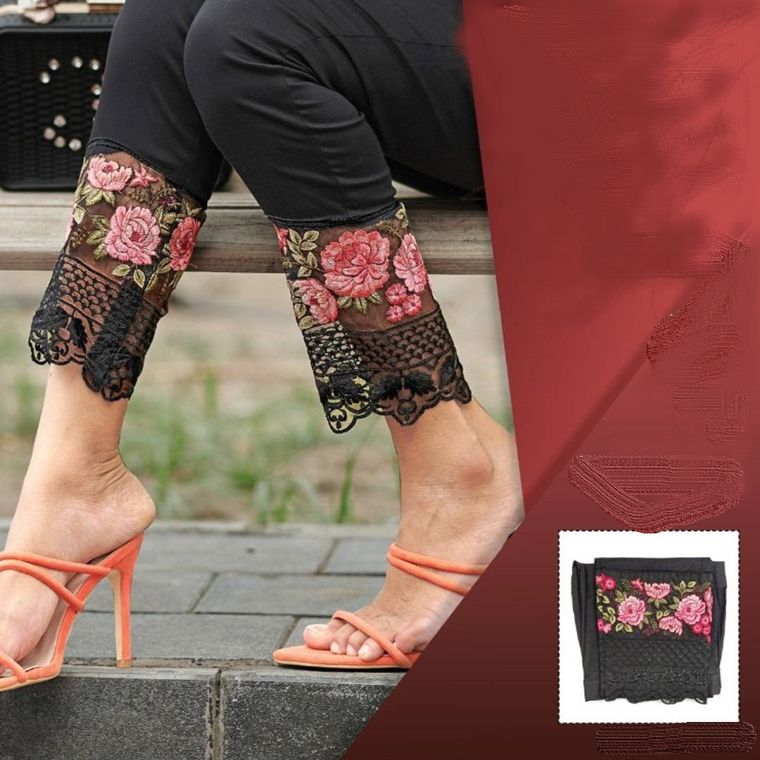 Stylish Black Slub Cotton Lycra Embroidered Rose Tissue Ethnic Pant For Women