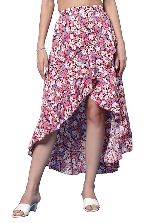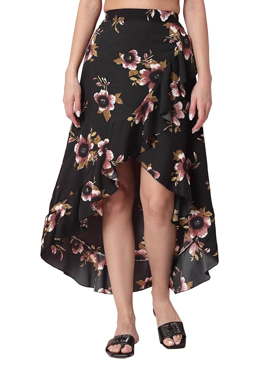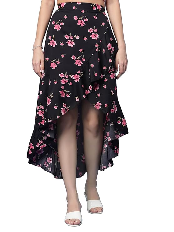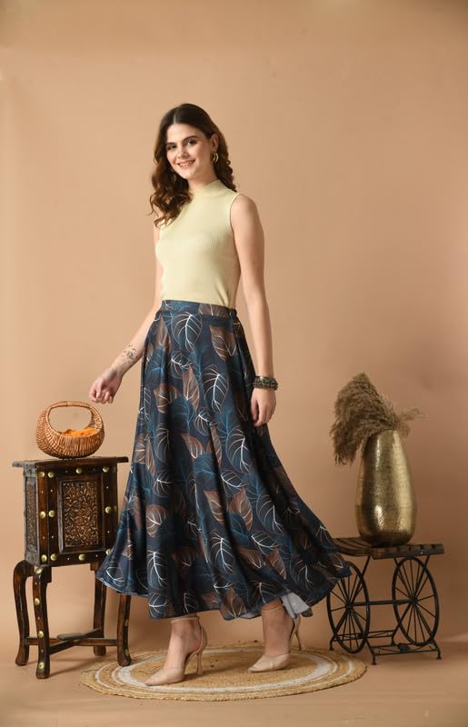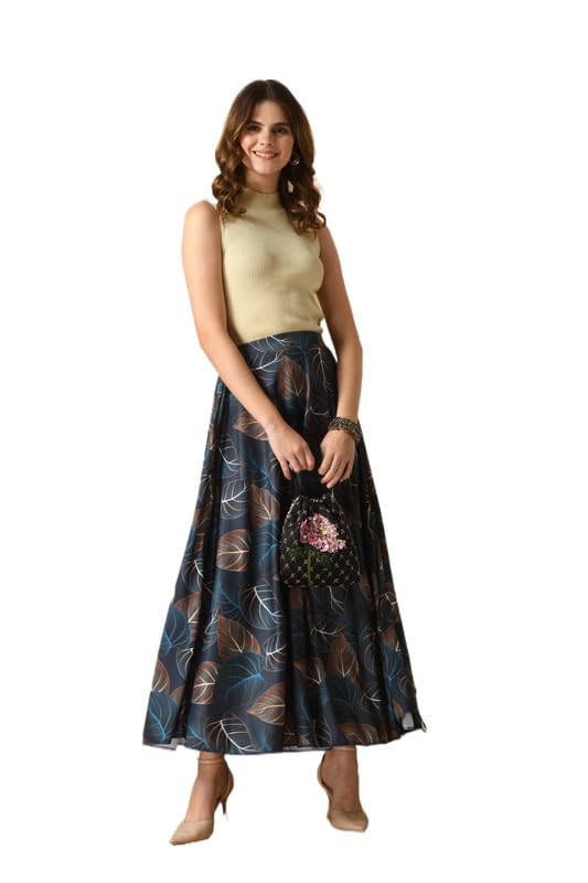 VAIGSHA'S Long Skirts for Women Floral Print Skirt American Poly Spandex Casual Skirt for Girls
