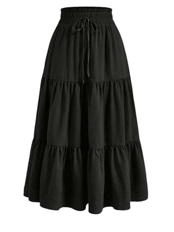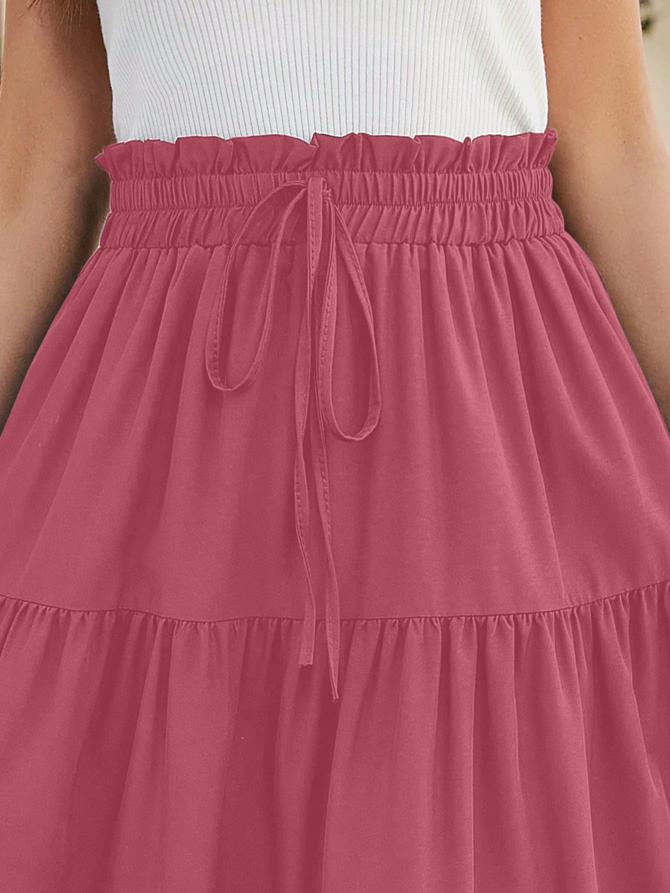 Aahwan Solid Tiered Ruched Elastic Waist Skirt for Women's & Girl's