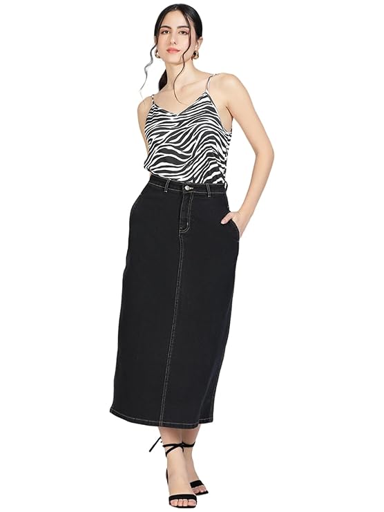 Stars and You Women Midi Skirt (SBlackSkaterskirt.36_Black_36)