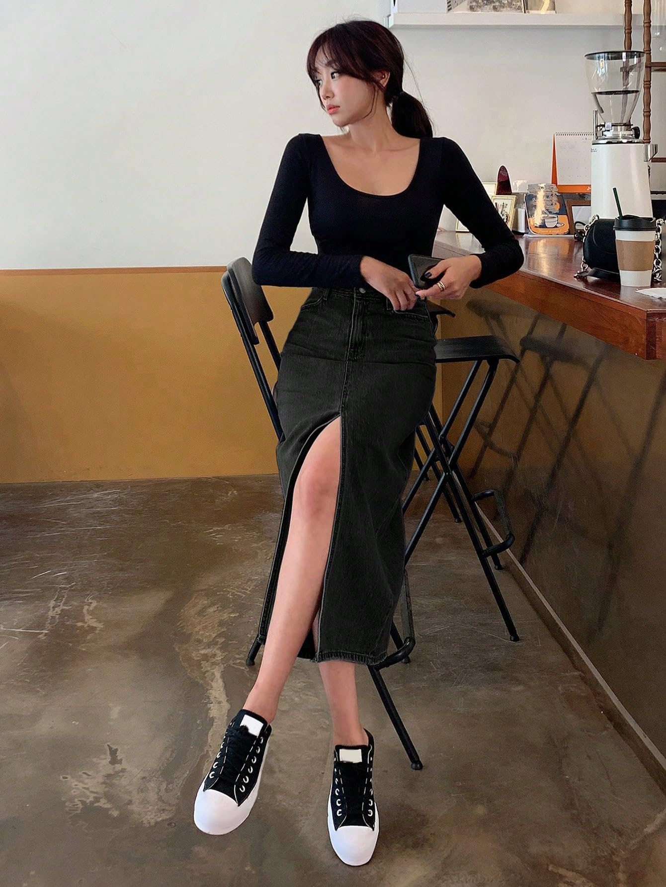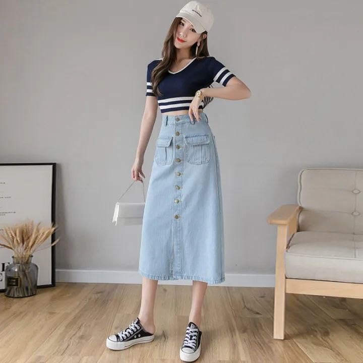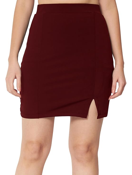 Mehrang Women's Formal Pencil Mini Skirt – Knee Length, Stretchy Skater Style with Elastic Waistband & Slit