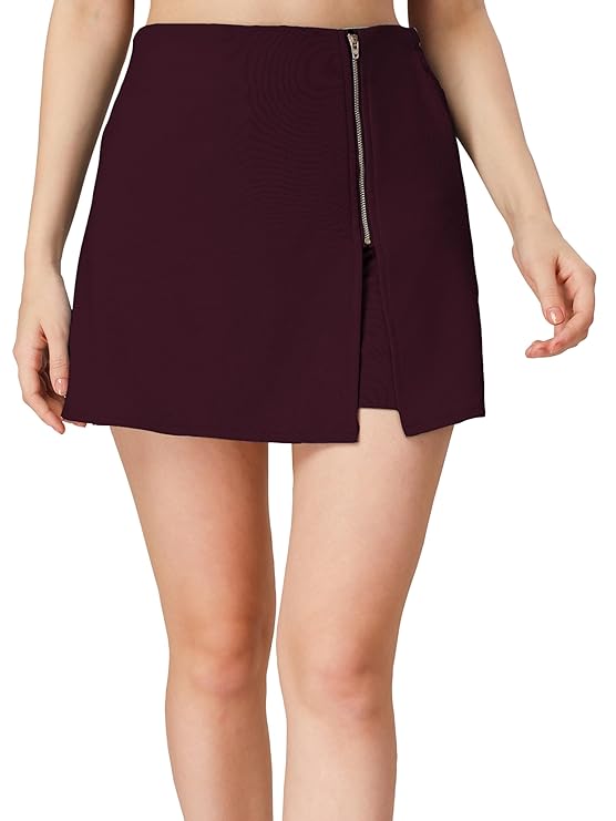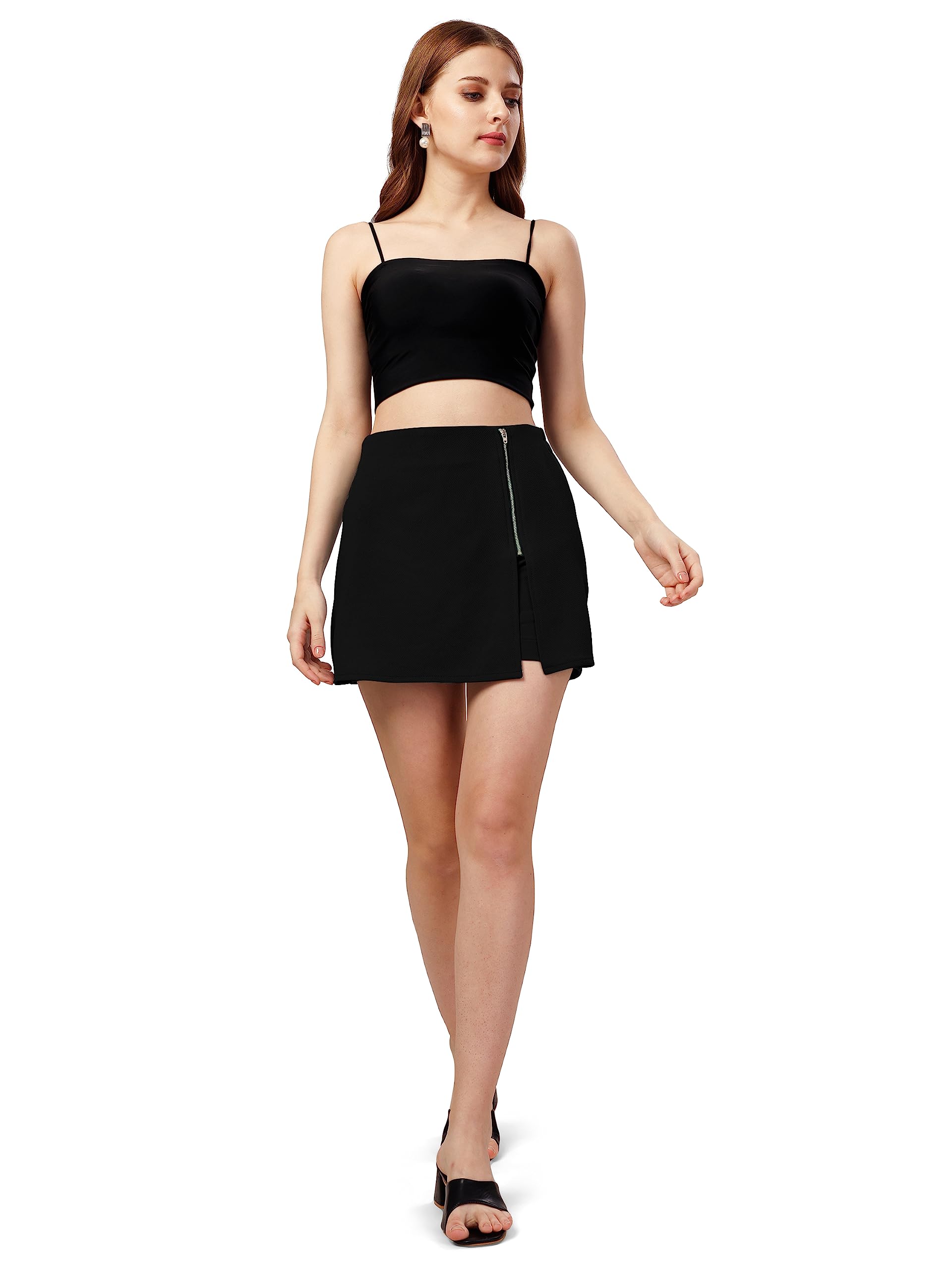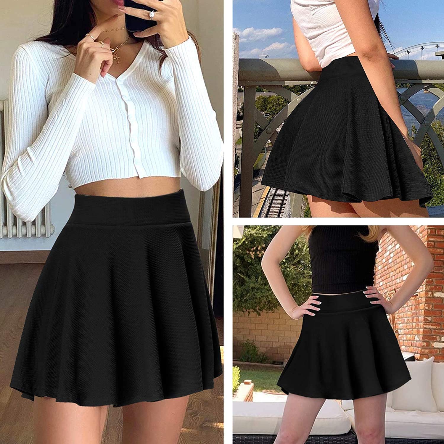 Mehrang Women's & Girl's Solid Mid Waist Flared Skater Short Mini Skirt with Shorts