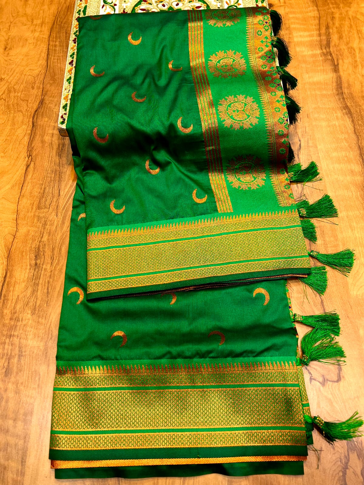 Chandrakor Kadiyal Paithani Kadiyal Paithani all over Buttis with runing Blouse