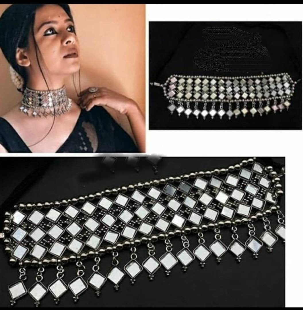 Latest Trendy Designer Oxidised Mirror Choker Necklace Set