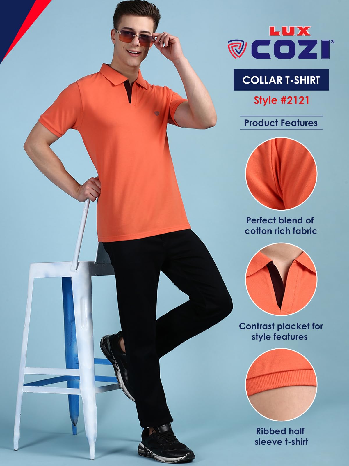 - Lux Cozi Men's Regular Fit Polo Neck Half Sleeve Solid Casual T-shirt is a stylish and comfortable choice for casual wear.