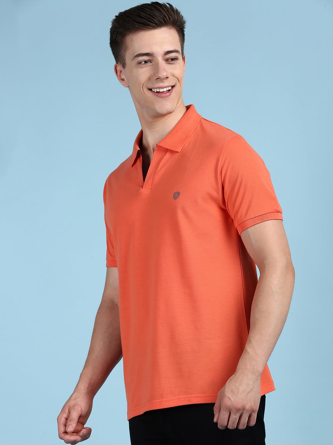 Lux Cozi Men's Pack of 1 Apricat Regular Fit Polo Neck Half Sleeve Solid Casual T-Shirt (Size : Small)_COZI_2121_APRCAT_S_1PC