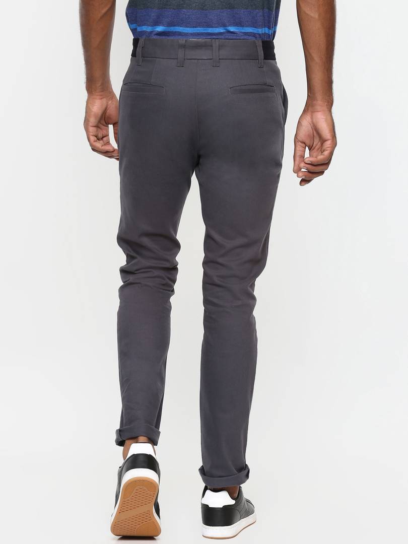 Men's Grey Cotton Solid Mid-Rise Casual Regular Fit Chinos