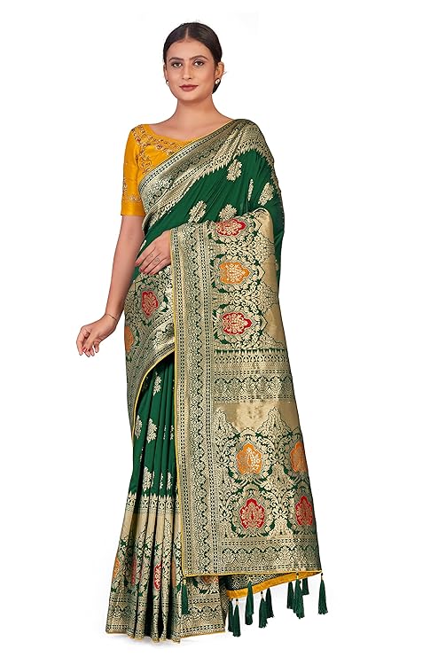 Monjolika Fashion Women's Woven Silk Saree With Blouse Piece (45560_Color_Rani Pink)