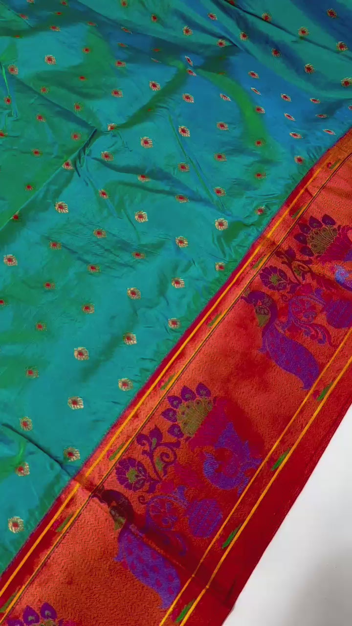 Handmade Gap Brocade Paithani Saree Brocade Blouse in Pure Tana Soft Silk with All Over Buttis & Meenakari Colour Pallu.
